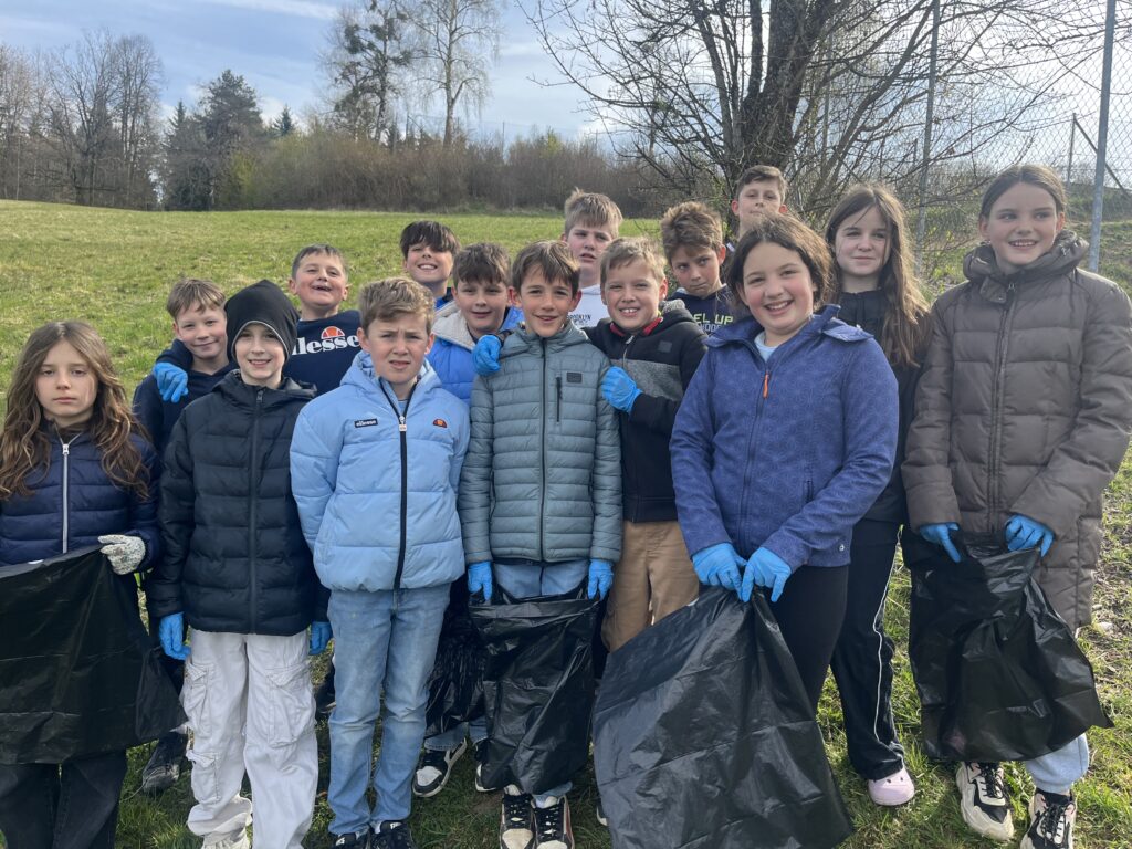 Am Donnerstag vor den Osterferien, gingen wir Kinder der vierten Klasse, im Ortsgebiet, Müll sammeln. Wir gingen quer Feld ein über die Wiese zum Fichtenweg. Gleich zu Beginn des Weges fanden wir eine große Menge Müll. Von Zigarettenstummel, Bierdosen bis Fußballschuhe war alles dabei. Wir fanden auch ein schönes Armband. Dann suchten wir auch auf der Wiese vor dem Pfarrhof nach Müll, damit der Herr Pfarrer nicht zu viel Arbeit hat.