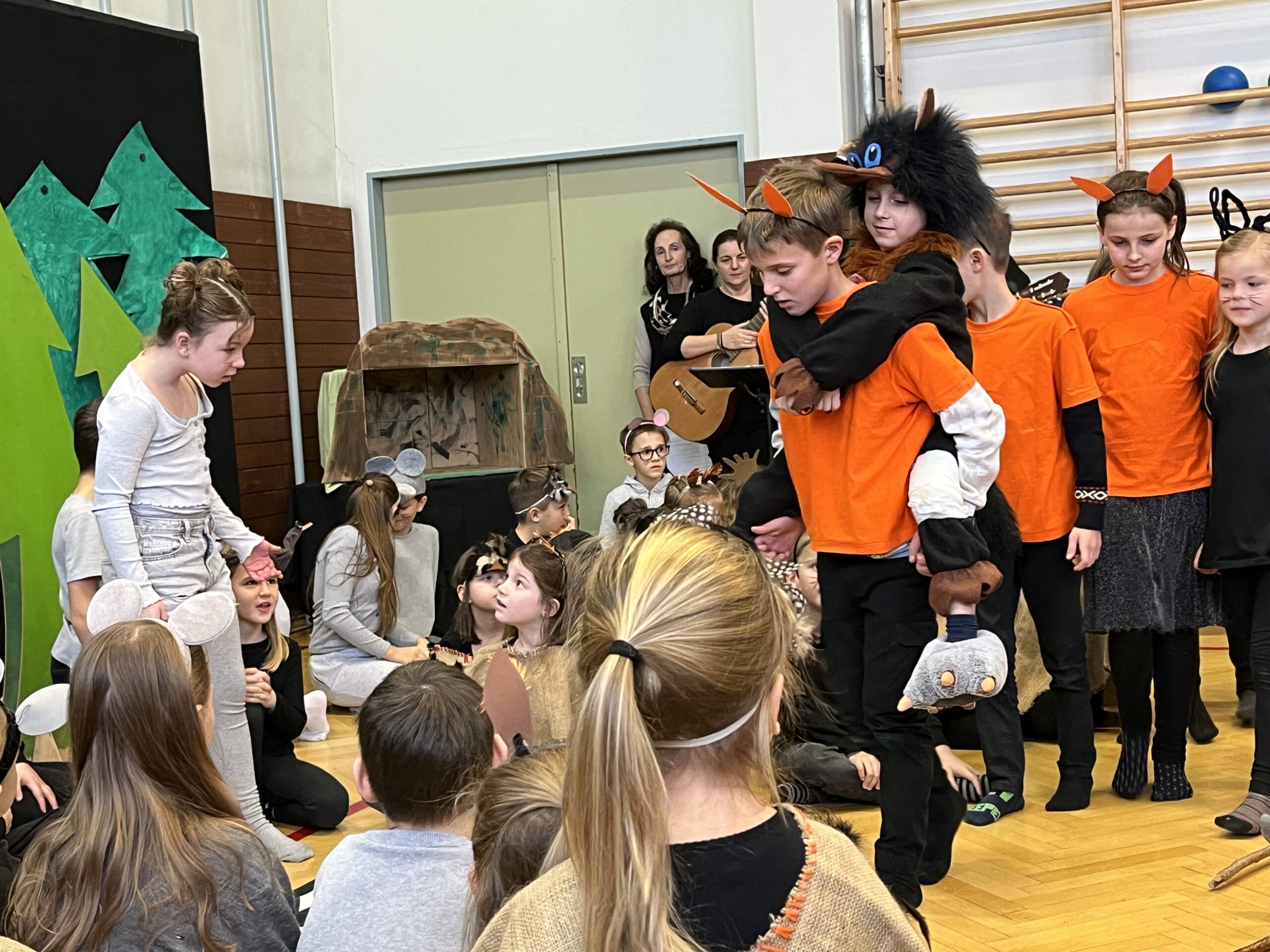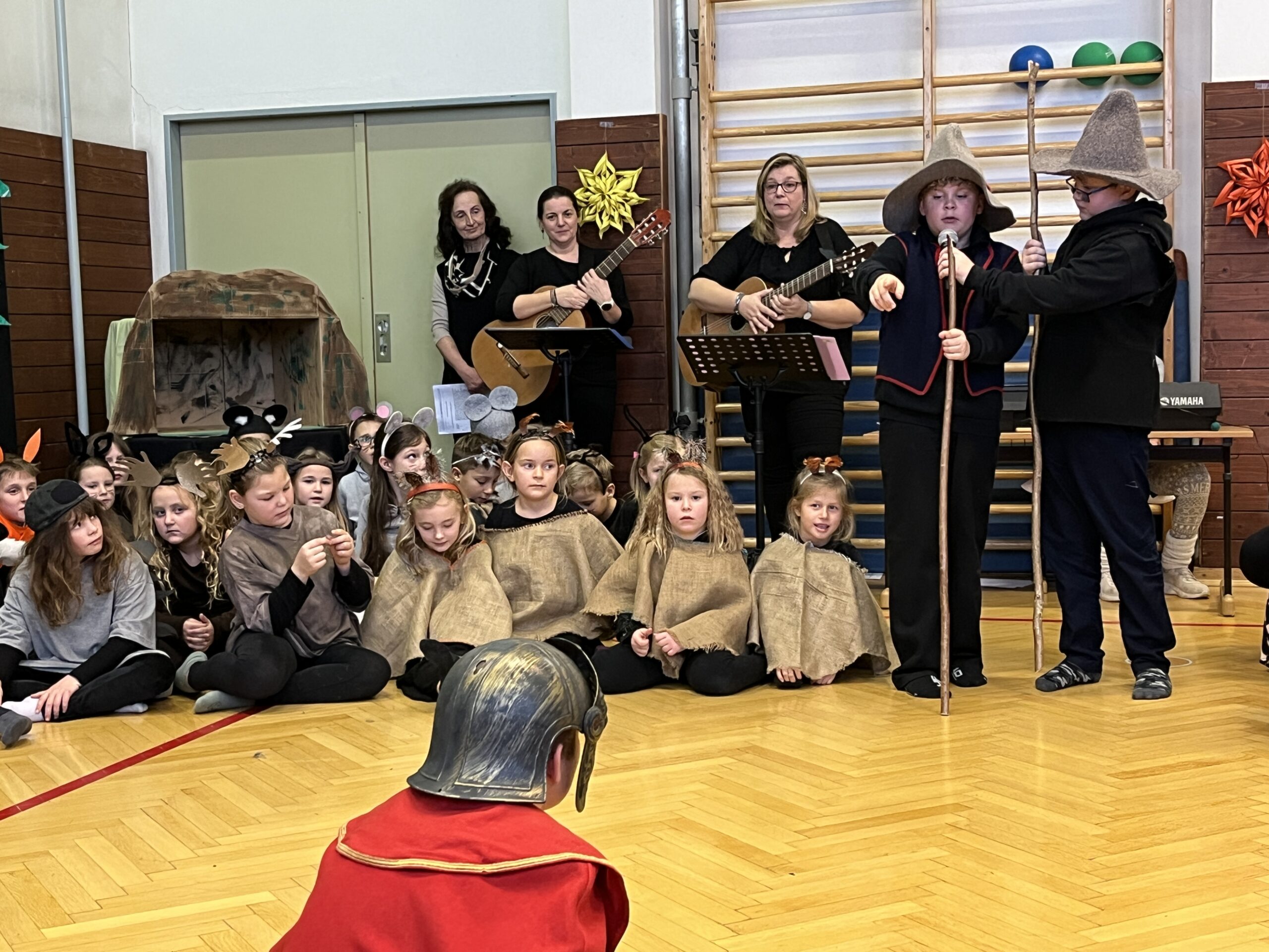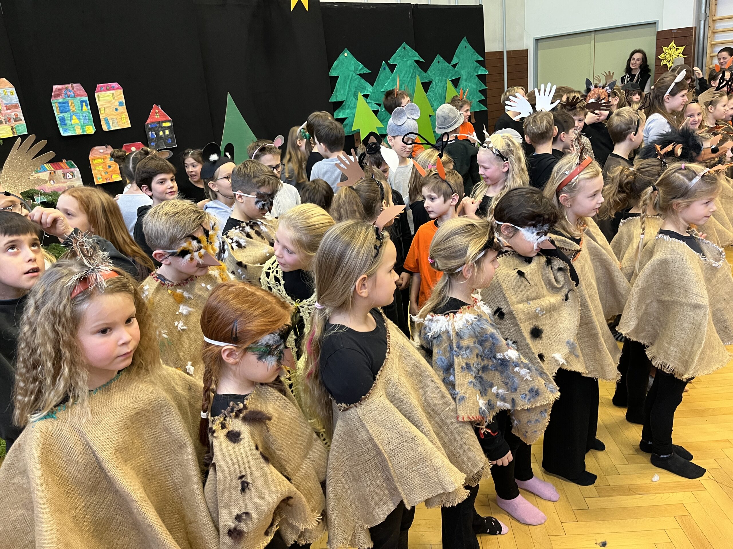 Am heutigen 23. Dezember stimmten wir uns mit einer gemeinsamen Weihnachtsfeier auf das morgige Weihnachtsfest ein. Um Weihnachten als Fest der Nächstenliebe ging es in dem Stück “Weihnachten der Waldtiere”. Danach führten die Hirten den römischen Herold Justus in einem Krippenspiel zum neugeborenen Jesuskind. Umrahmt vom wunderbaren Gesang, sowie Instrumentalmusik der Schulkinder ließen uns die beiden Stücke spüren, dass Weihnachten sehr nah ist.
