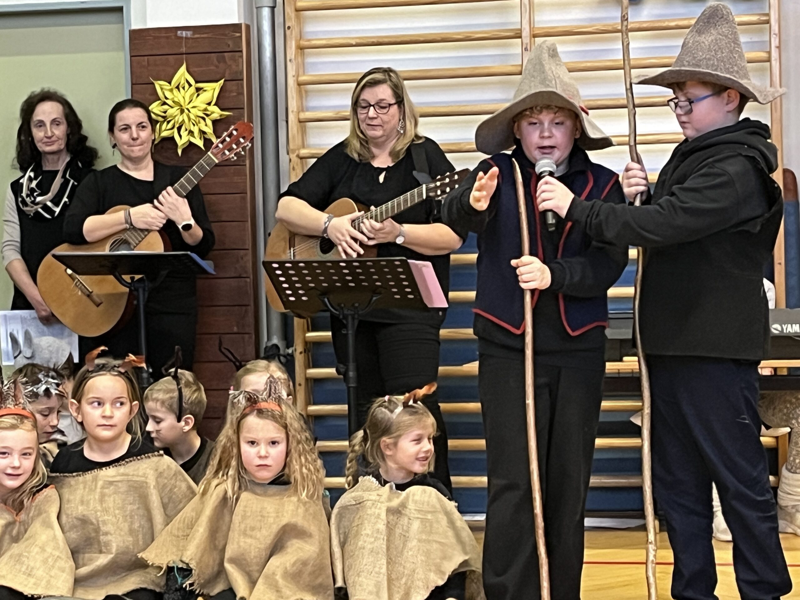 Svoje talente so nam pokazali šolarke in šolarji na skupni božičnici. Z veliko vnemo so se pripravljali na ta dogodek, da bi mamicam, atijem, babicam, … pokazali kako odlično znajo zapeti in zaigrati.