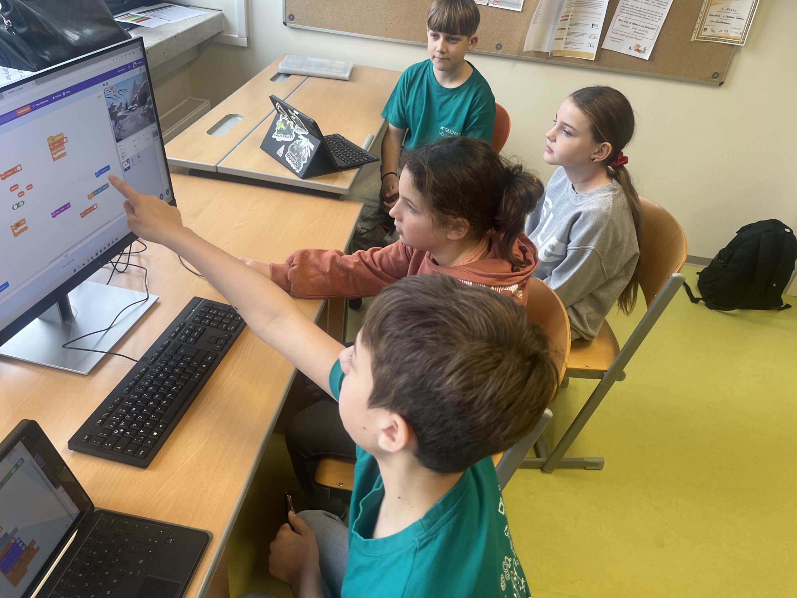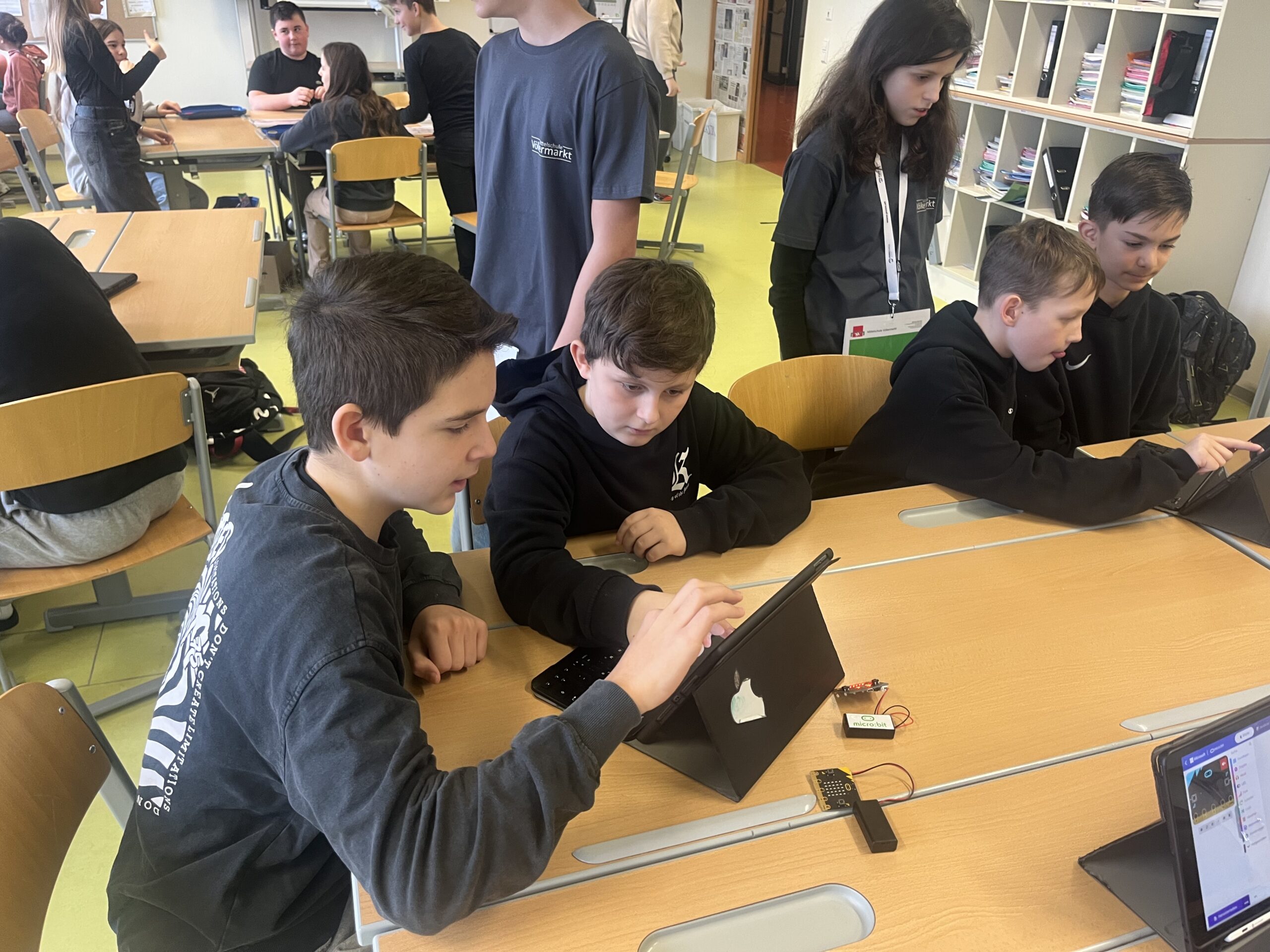 Heute in der Früh trafen sich die Kinder der 4. Klasse unten am Schotterparkplatz. Um 7.28 Uhr kam der Bus der uns nach Völkermarkt zur Mittelschule brachte. Dort wurden wir vom Direktor empfangen. Unsere Gruppenanführer brachten uns ins Esszimmer. Es gab Monsterbrote, Müsli, Schneemänner und Getränke. Danach gingen wir in die Mint-Klasse. Dort durften wir ein Spiel programmieren und ein Auto steuern. Gleich darauf gingen wir in den Turnsaal und spielten das Piratenspiel. Später gingen wir in die Bibliothek und mussten ein Rätsel lösen. Das war sehr lustig. Kurze Zeit später kamen wir in die Englischklasse. Als erstes spielten uns die Schüler ein kurzes Theaterstück vor, dann setzte ich mich zu einer Bekannten. Sie zeigte mir, wie man am Tablet arbeitet. Die letzte Station war die Küche. Dort machten wir Monsterbrote, Müsli und Schneemänner. Wir fuhren mit dem Bus wieder zurück. Am Schotterparkplatz wartete schon meine Mama auf mich.
