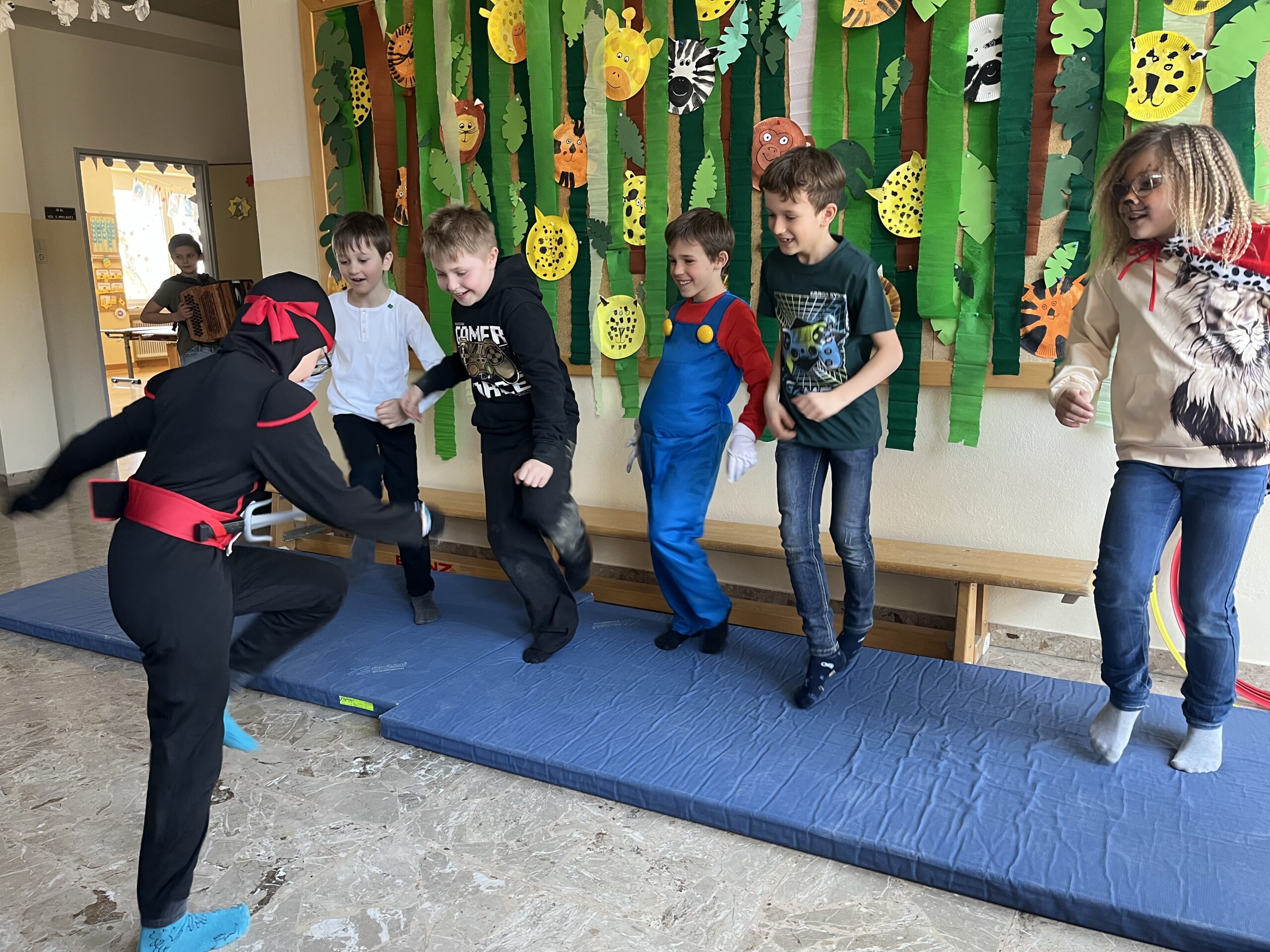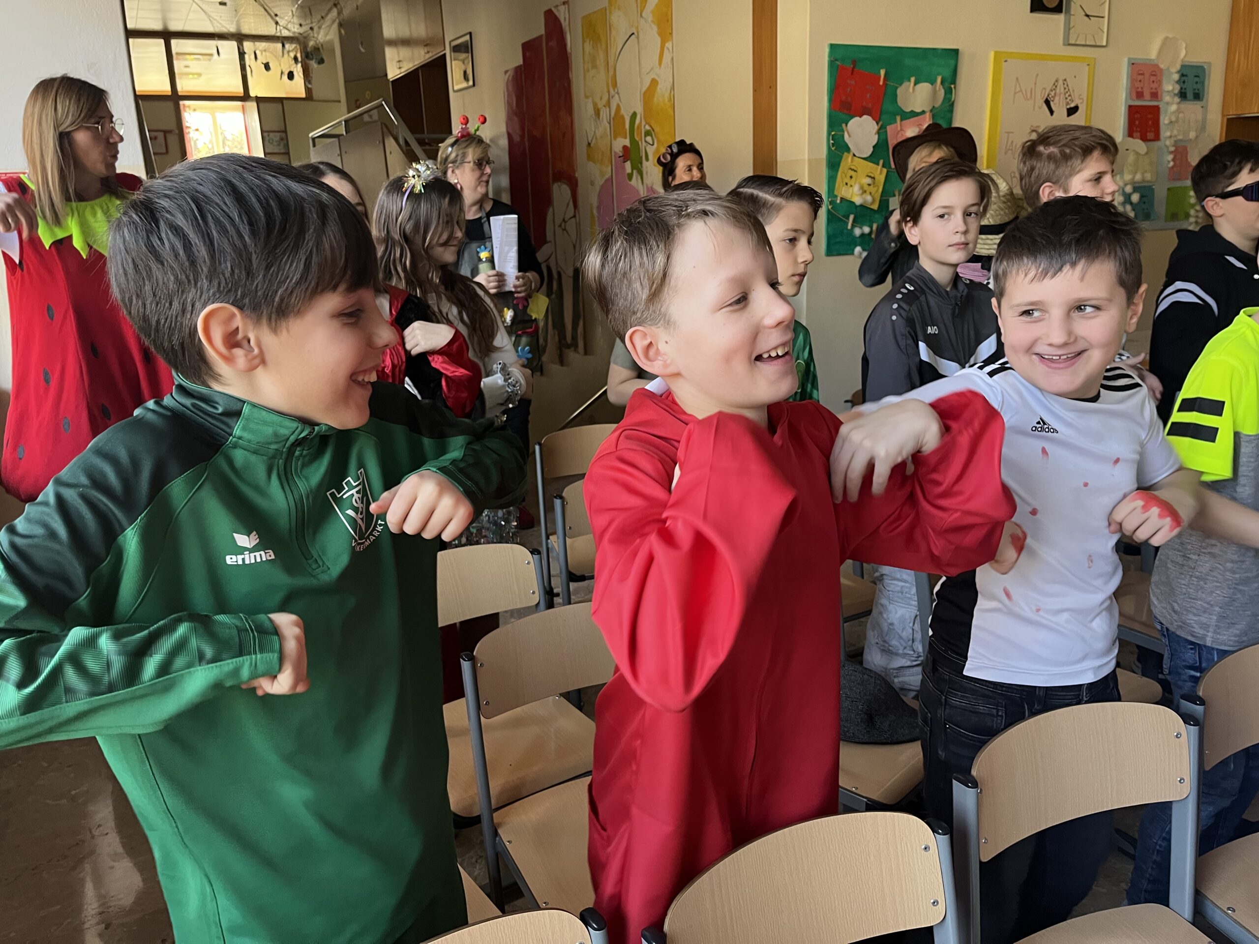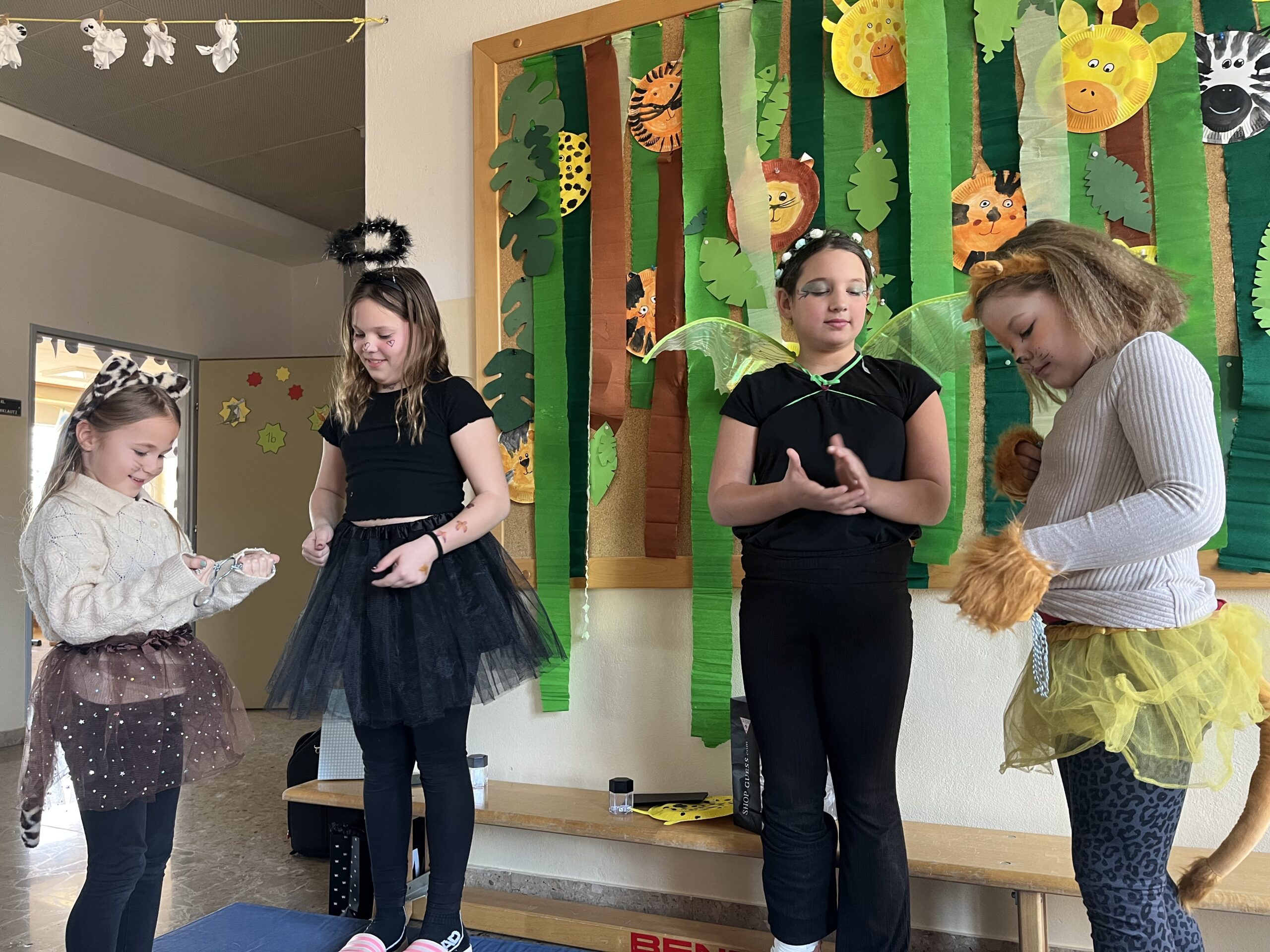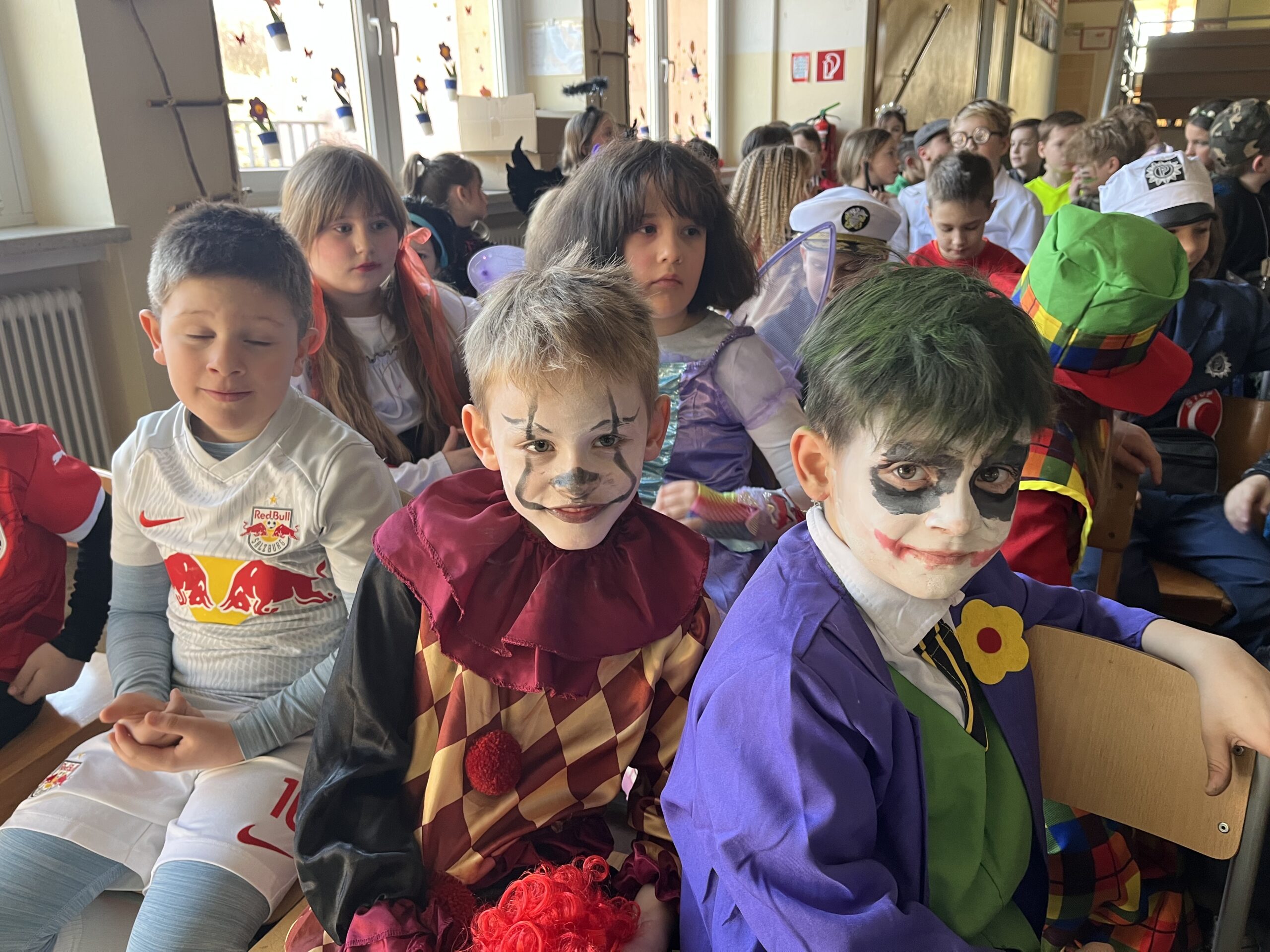 Ein buntes Treiben herrschte am Faschingsdienstag in der Volksschule. Akrobaten, Zauberer, Sänger, Musikanten und Witzeerzähler stellten ihre Talente unter Beweis. Zum Ausklang des Tages durften natürlich Krapfen nicht fehlen.