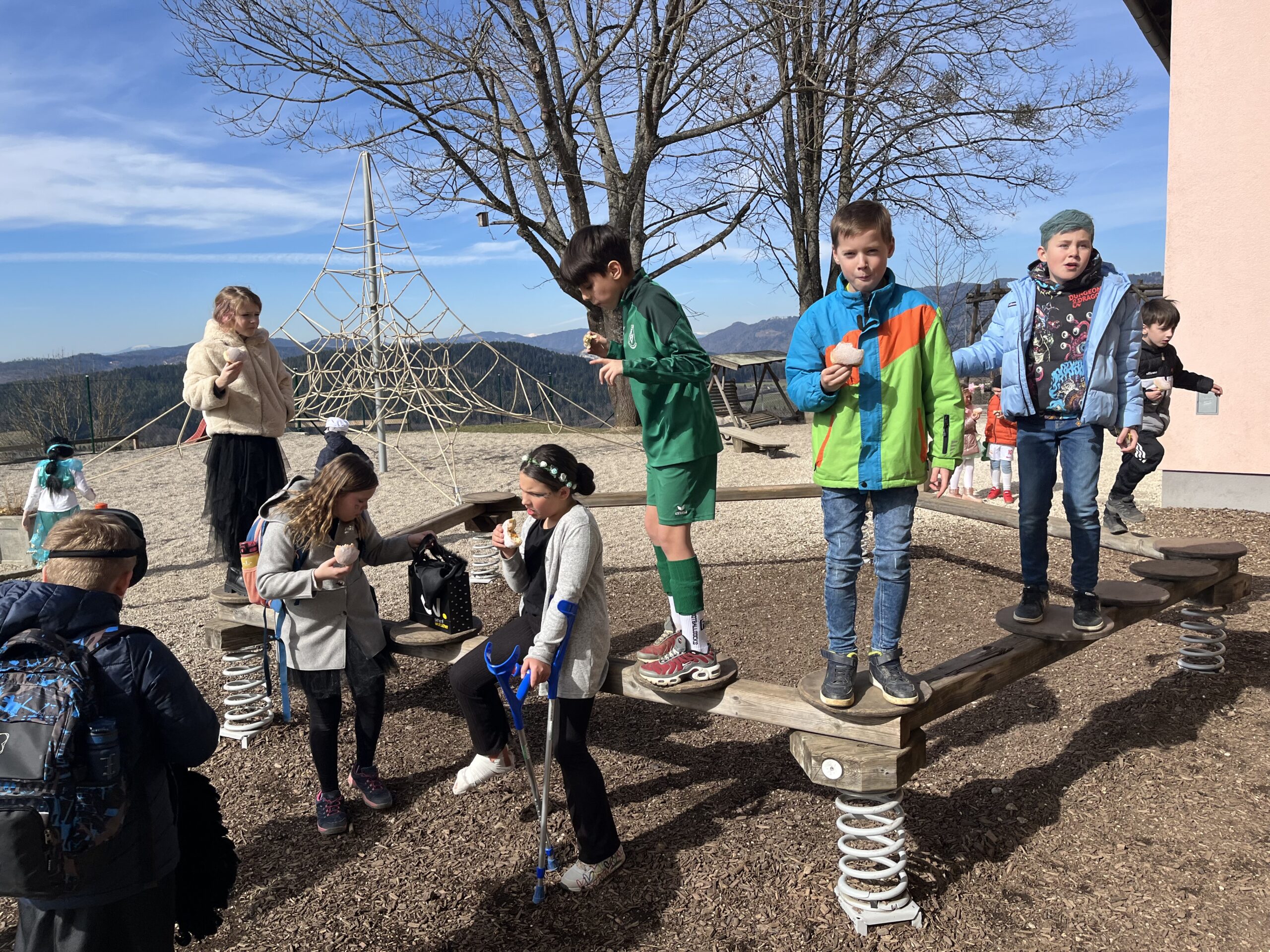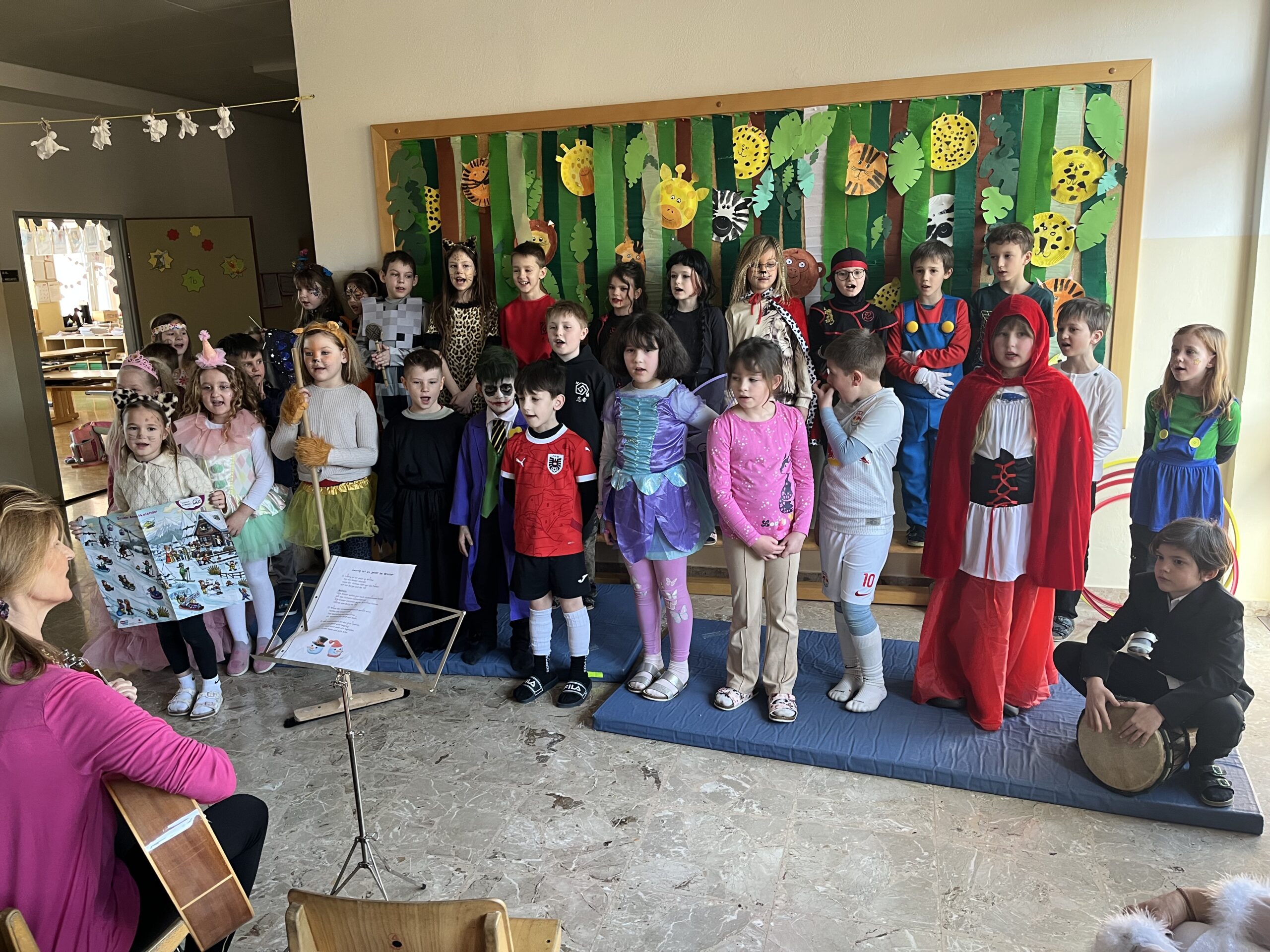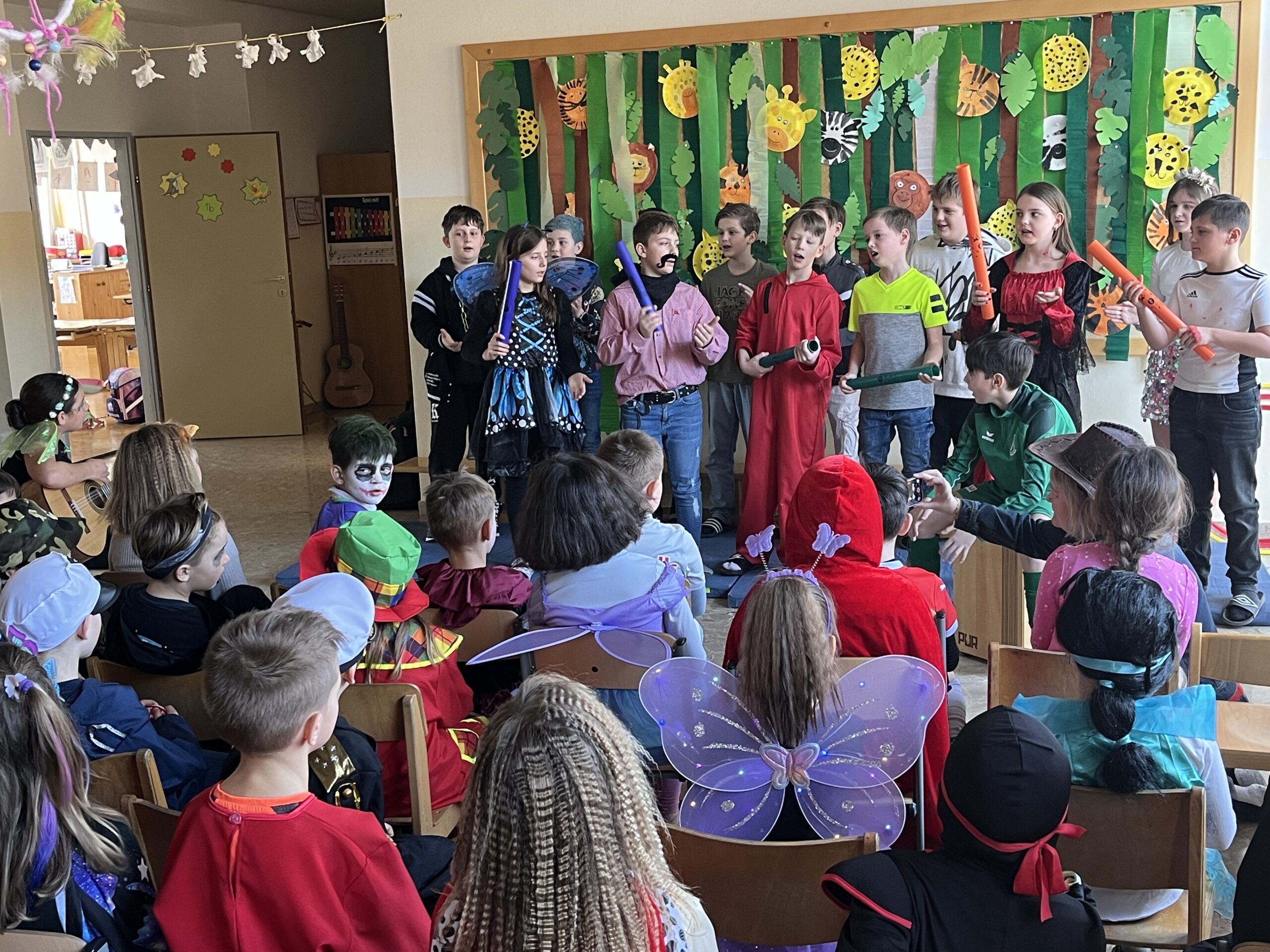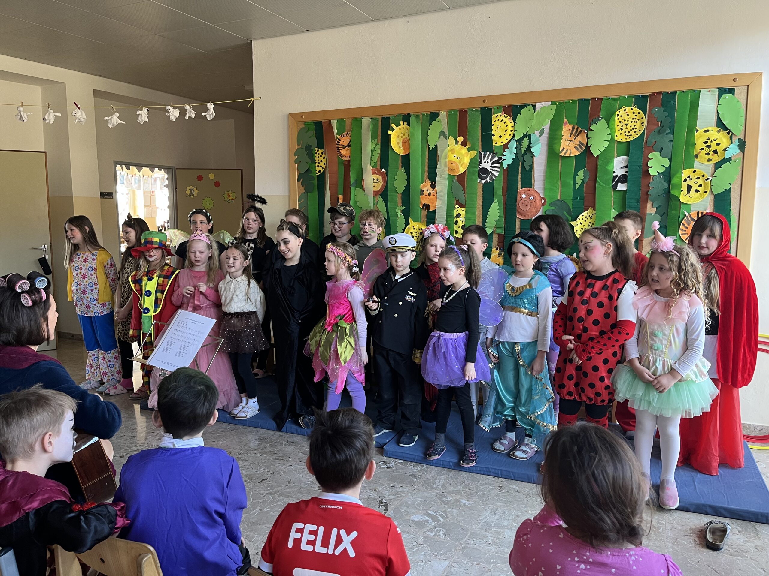 Ein buntes Treiben herrschte am Faschingsdienstag in der Volksschule. Akrobaten, Zauberer, Sänger, Musikanten und Witzeerzähler stellten ihre Talente unter Beweis. Zum Ausklang des Tages durften natürlich Krapfen nicht fehlen.