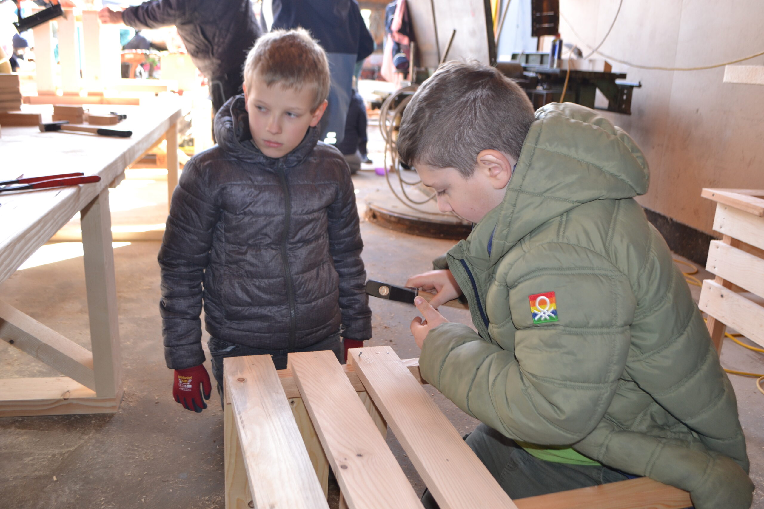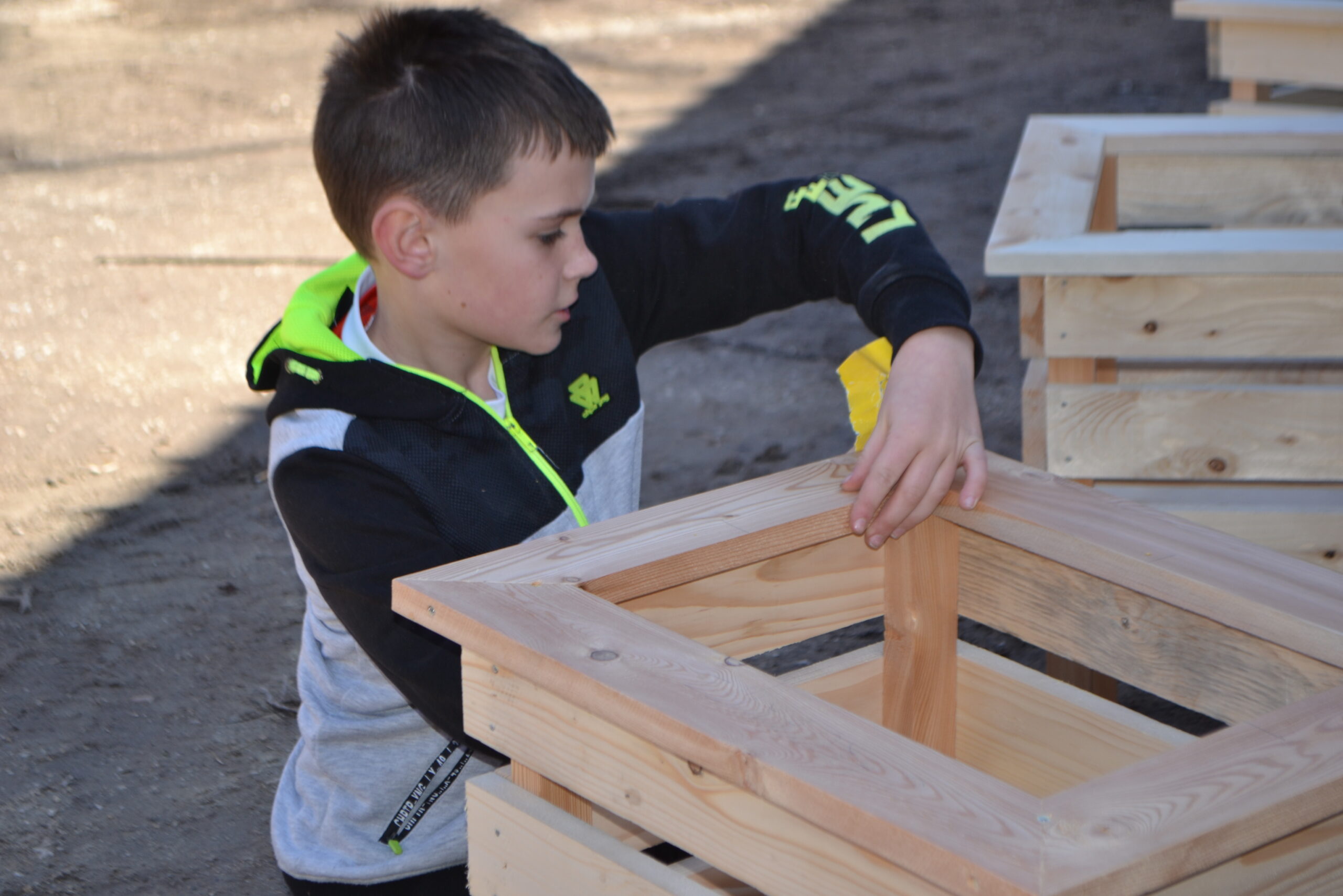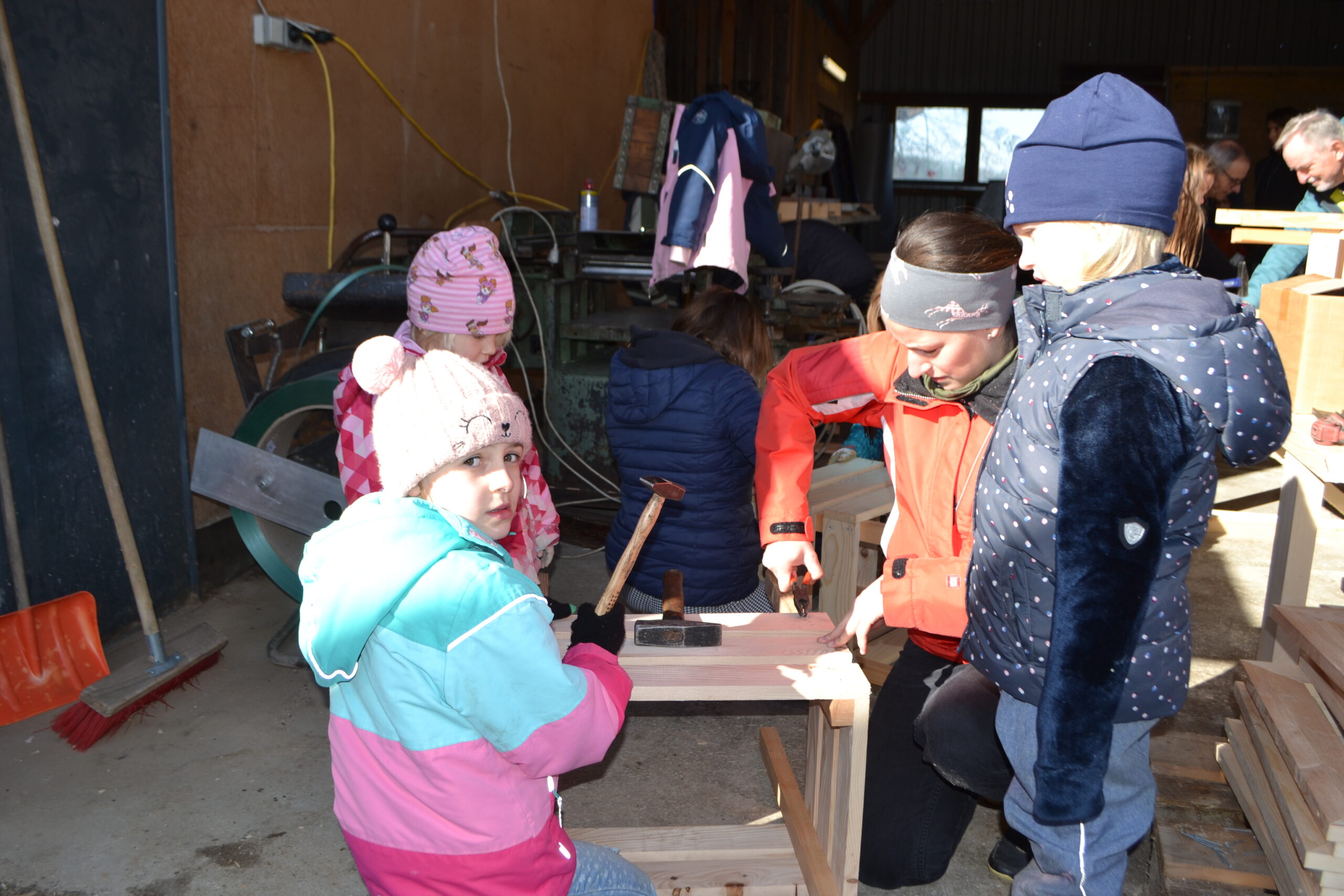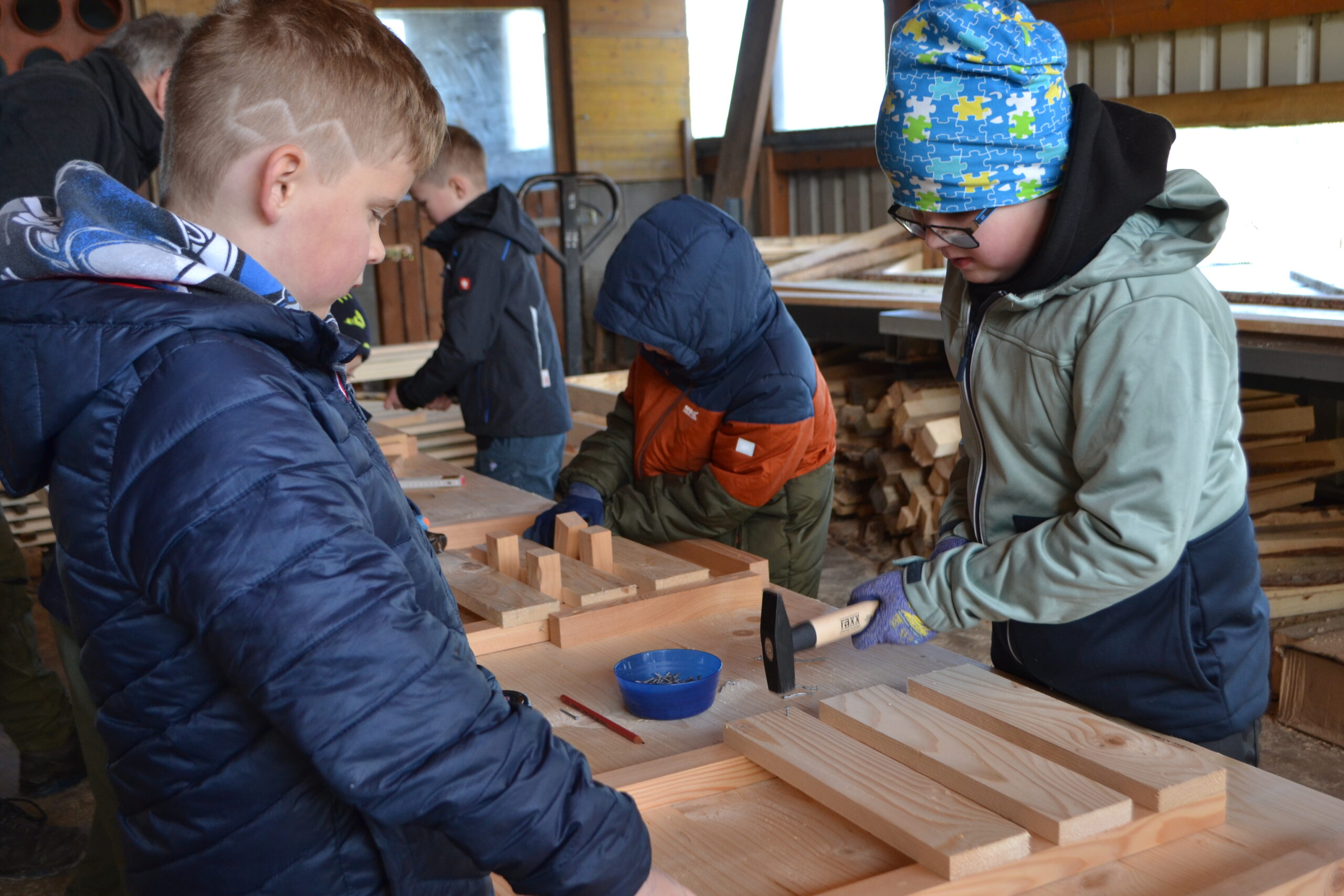 Einen ganz besonderen Schultag durften die Kinder der 2. Klasse und der 4a Klasse bei der Familie von Frau Lehrerin Karoline Omelko verbringen. Familie Omelko besitzt ein Sägewerk und zeigte den Kindern zunächst, wie aus einem Stamm Bretter geschnitten und gehobelt werden. Danach durfte sich jedes Kind aus den bereits vorbereiteten Brettern ein eigenes Hochbeet-Kisterl bauen. Dank der perfekten Vorbereitung und der zusätzlichen Unterstützung von Herrn Bierbaumer und von Anjas und Pauls Opa konnte hat nun jedes Kind SEIN Kisterl.