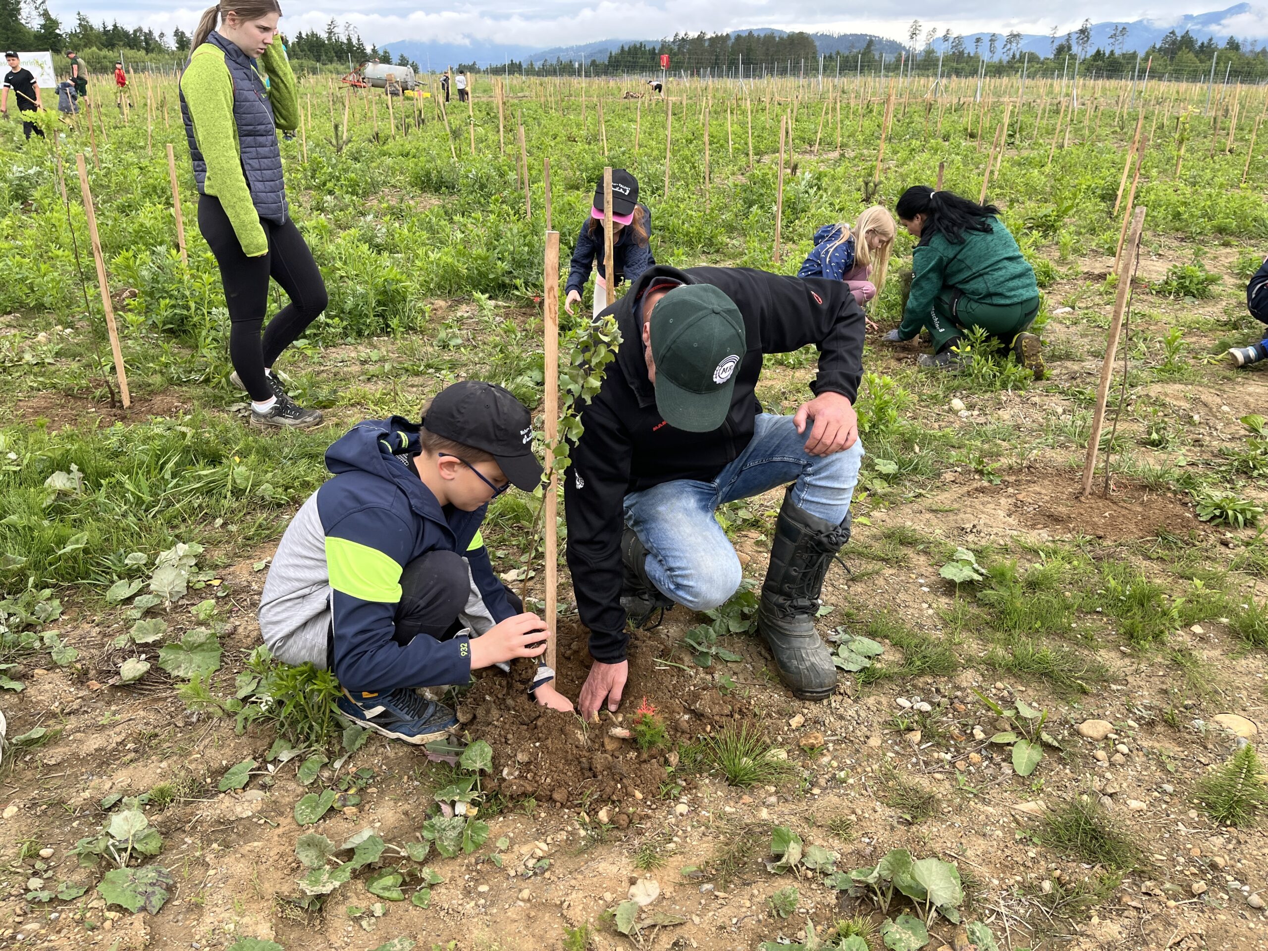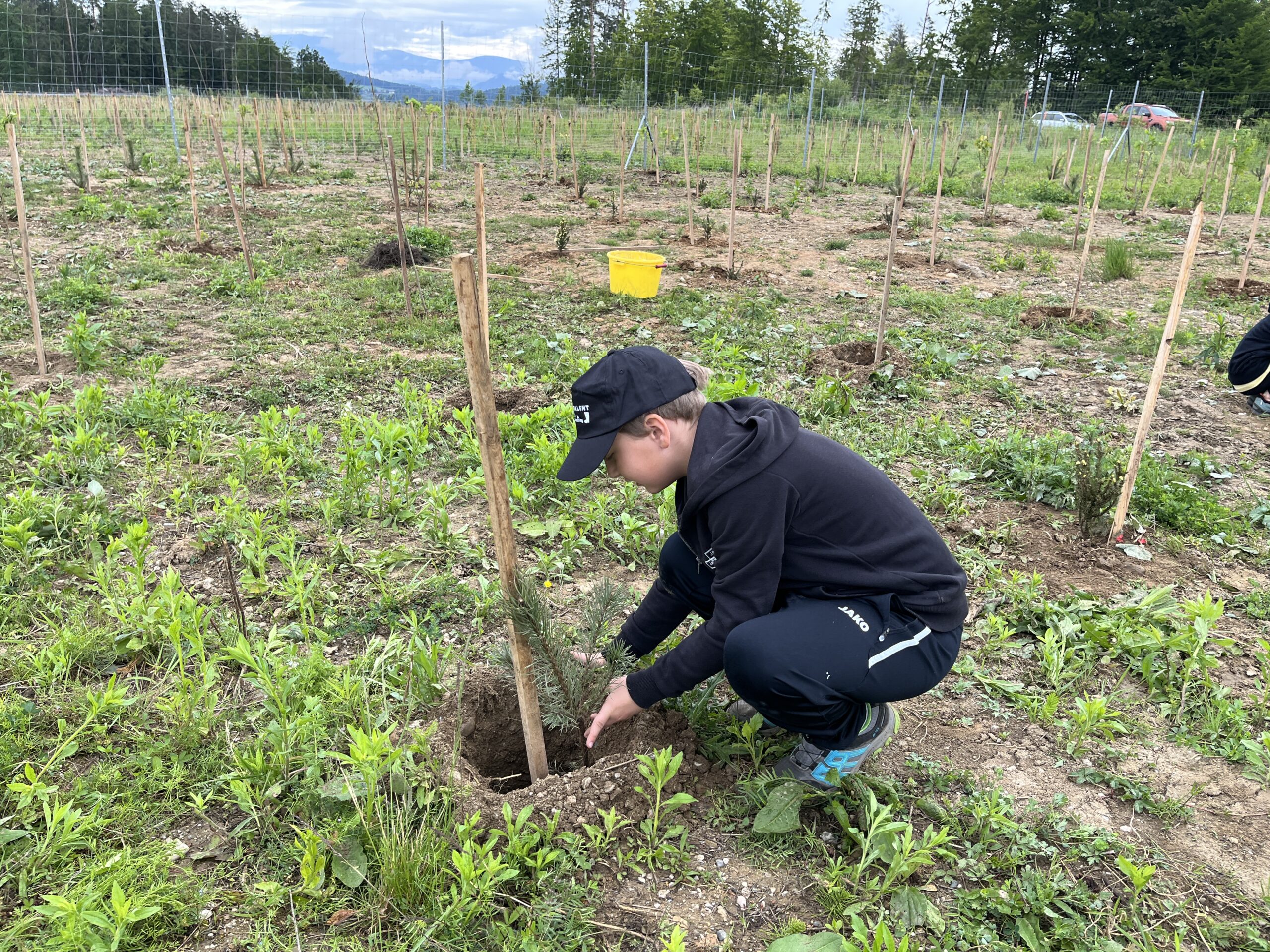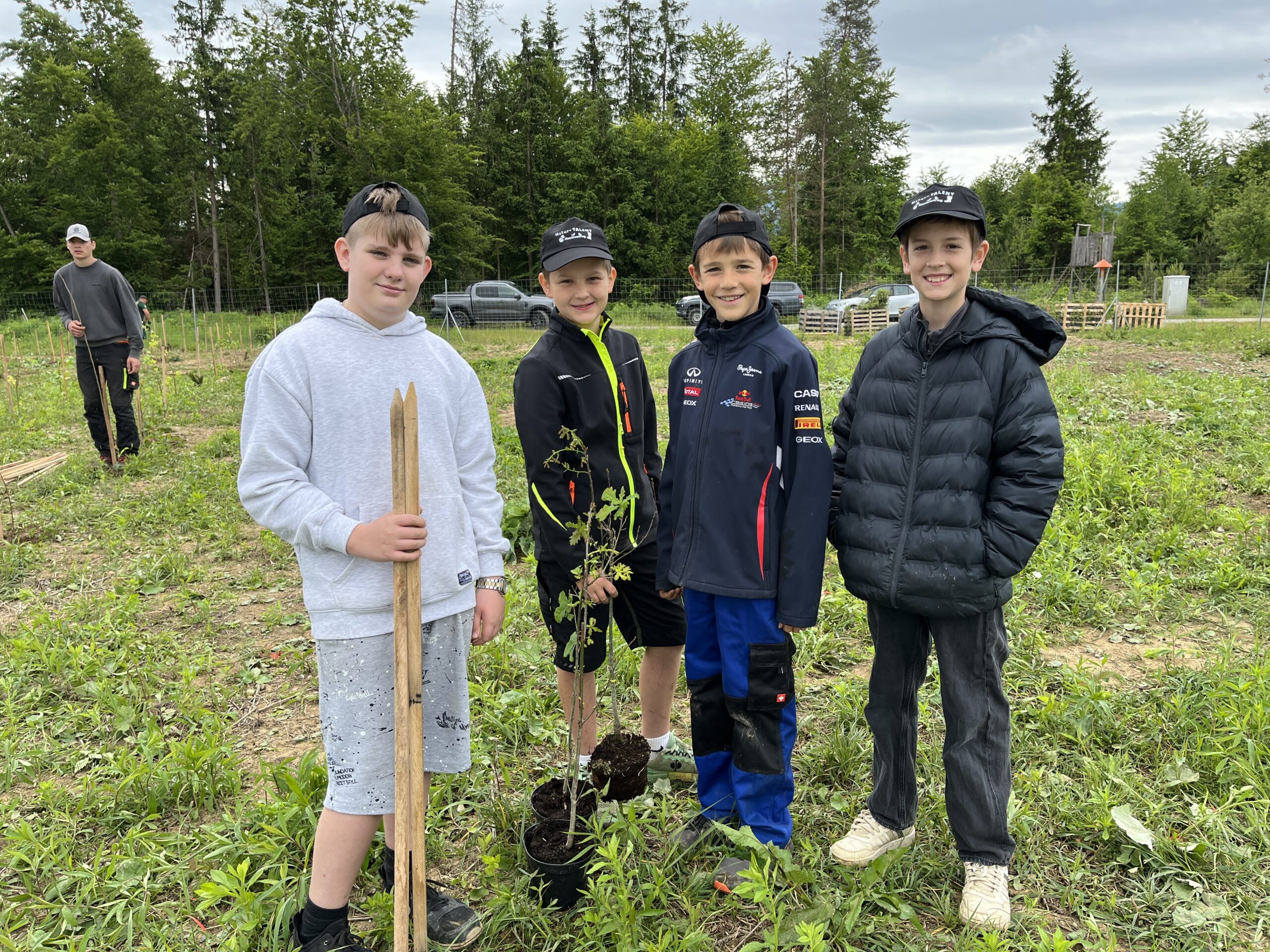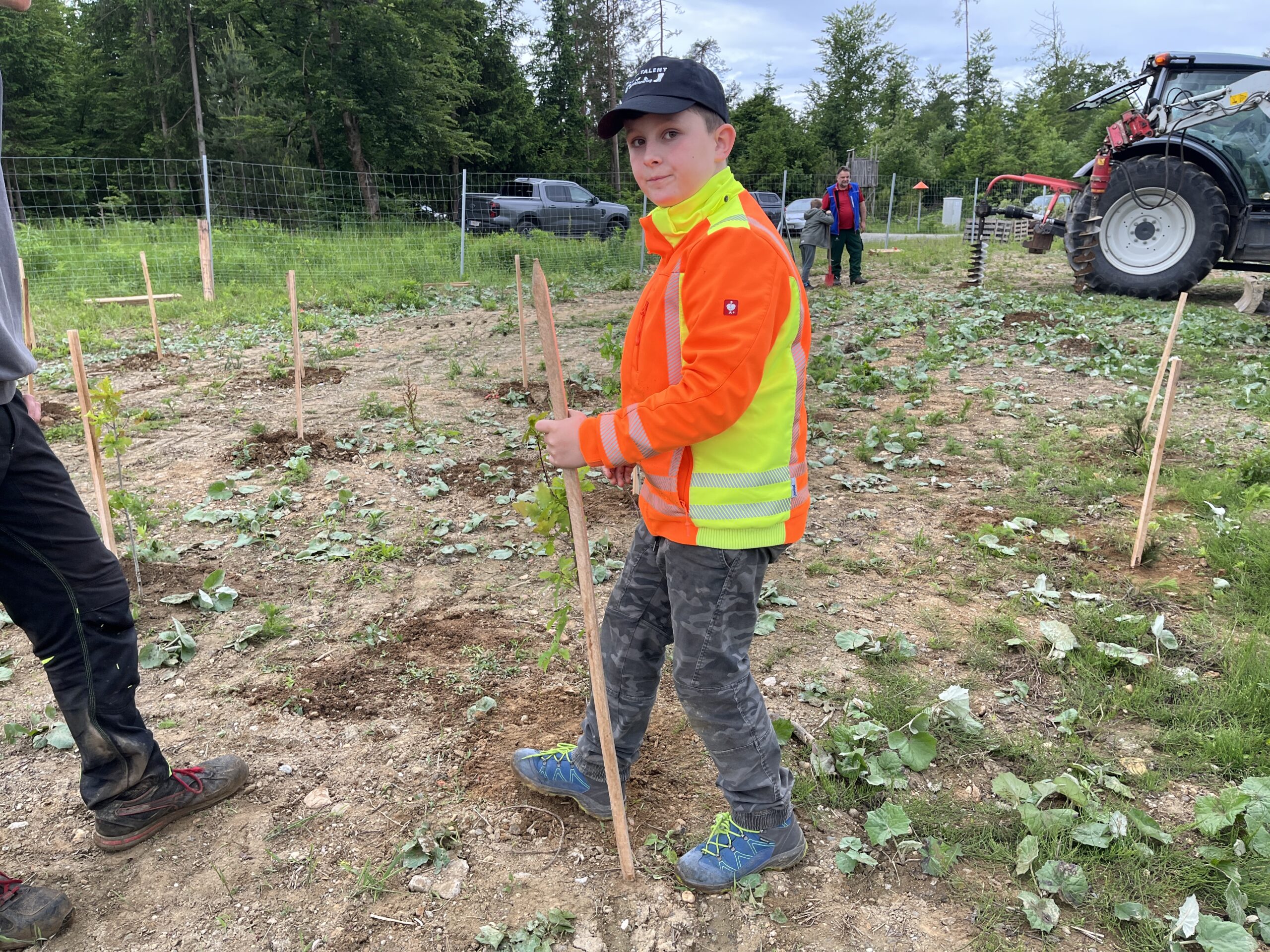 Die ÖBB mussten viele Bäume fällen, weil eine neue Zugstrecke nach Graz gebaut wurde. Deshalb werden nun an der Stelle vom Maschinenring neue Bäume gepflanzt. Dabei durften die Kinder der 3. und 4. Klasse einen Vormittag lang helfen. Wir pflanzten Fichten, Eichen, Föhren, Linden, Kirschen, Lärchen und Buchen.