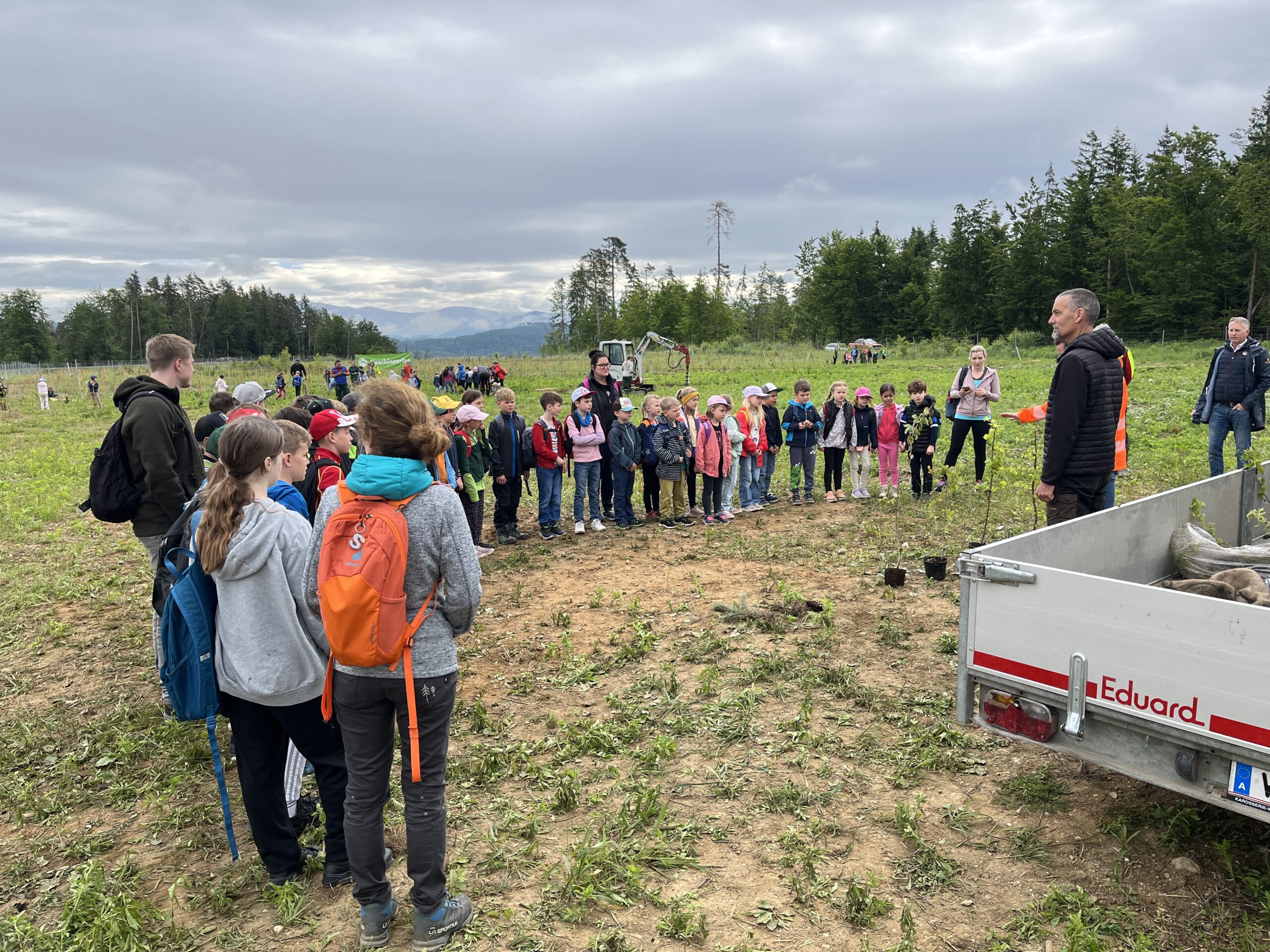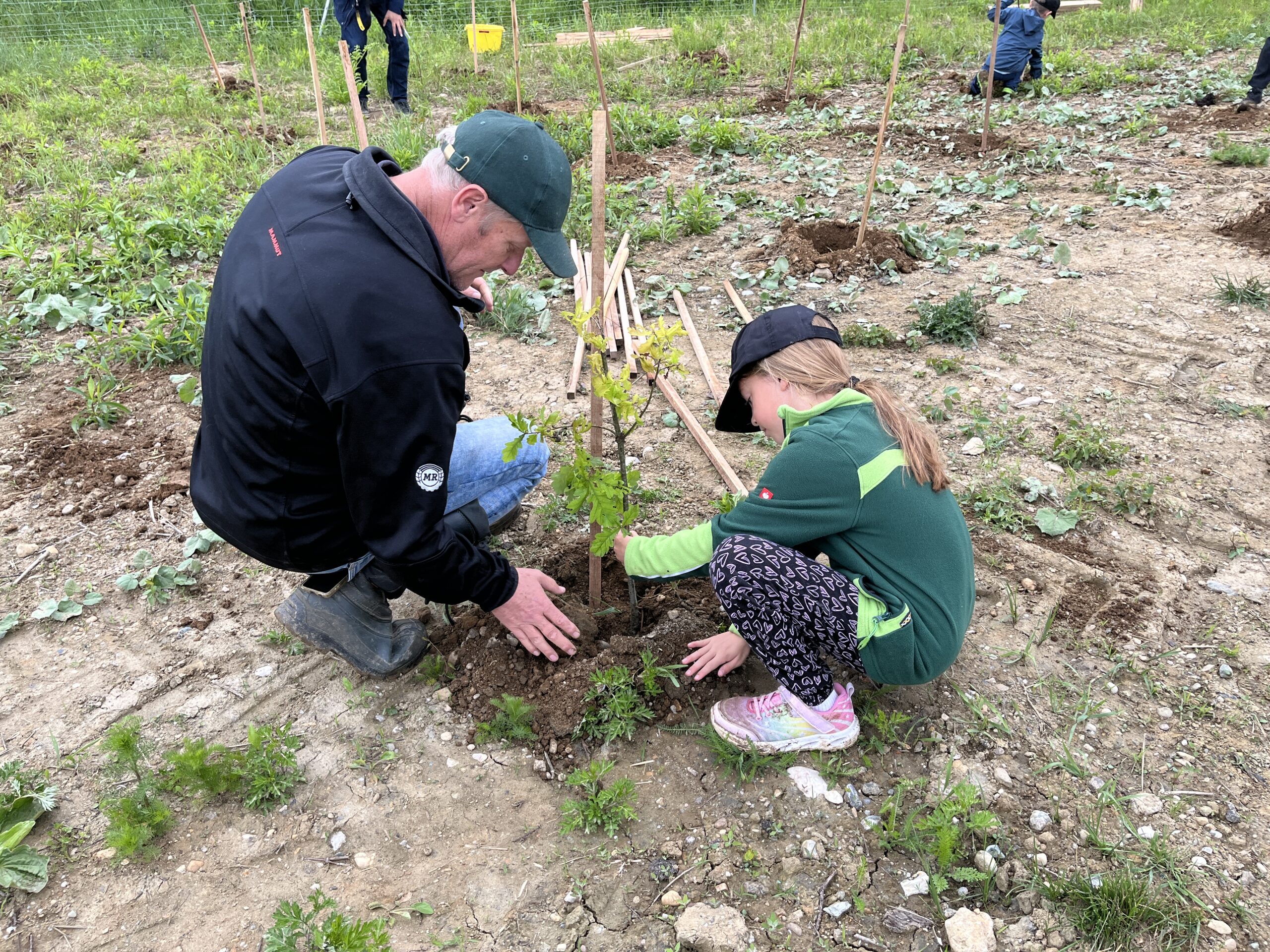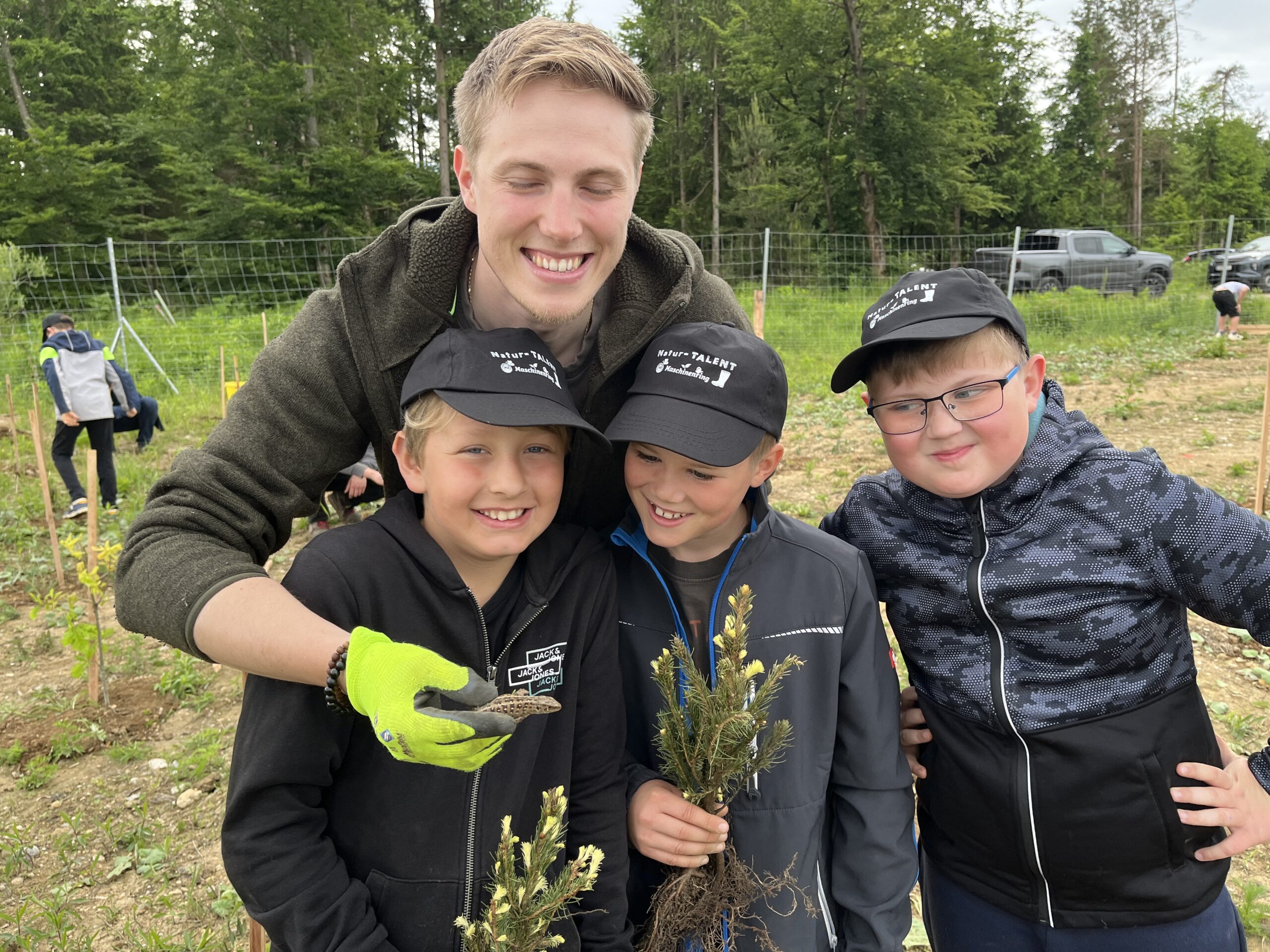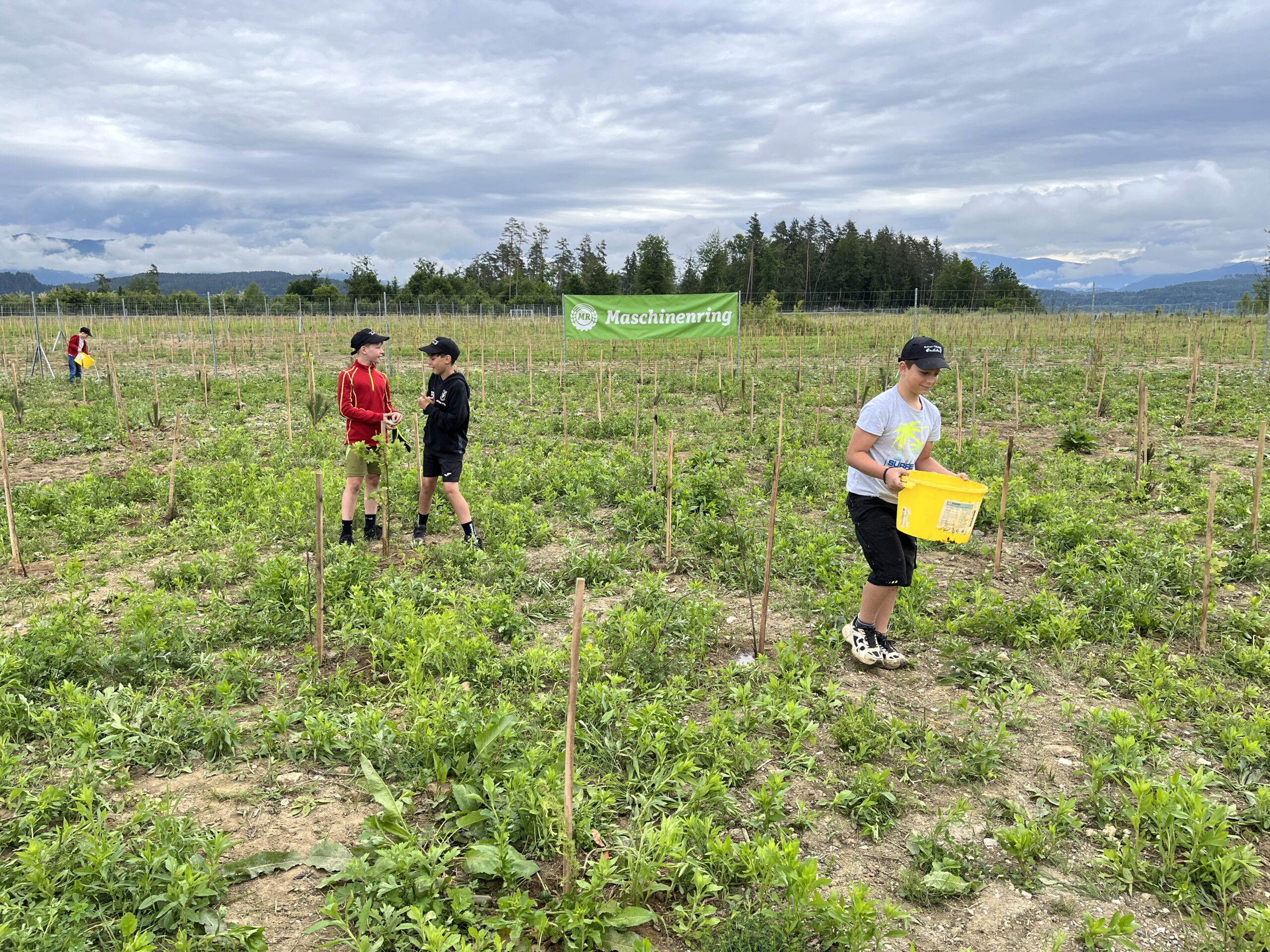 Die ÖBB mussten viele Bäume fällen, weil eine neue Zugstrecke nach Graz gebaut wurde. Deshalb werden nun an der Stelle vom Maschinenring neue Bäume gepflanzt. Dabei durften die Kinder der 3. und 4. Klasse einen Vormittag lang helfen. Wir pflanzten Fichten, Eichen, Föhren, Linden, Kirschen, Lärchen und Buchen.