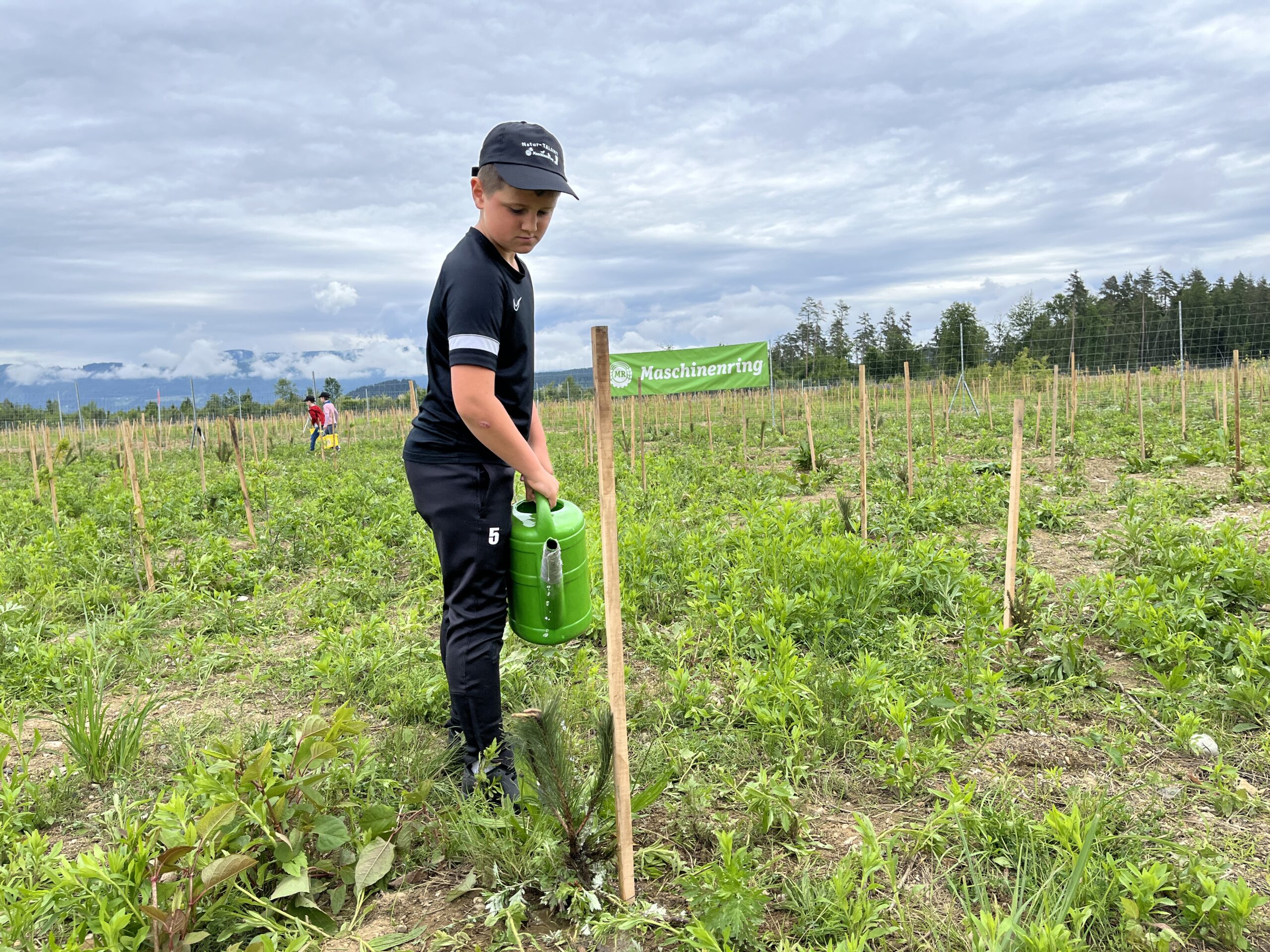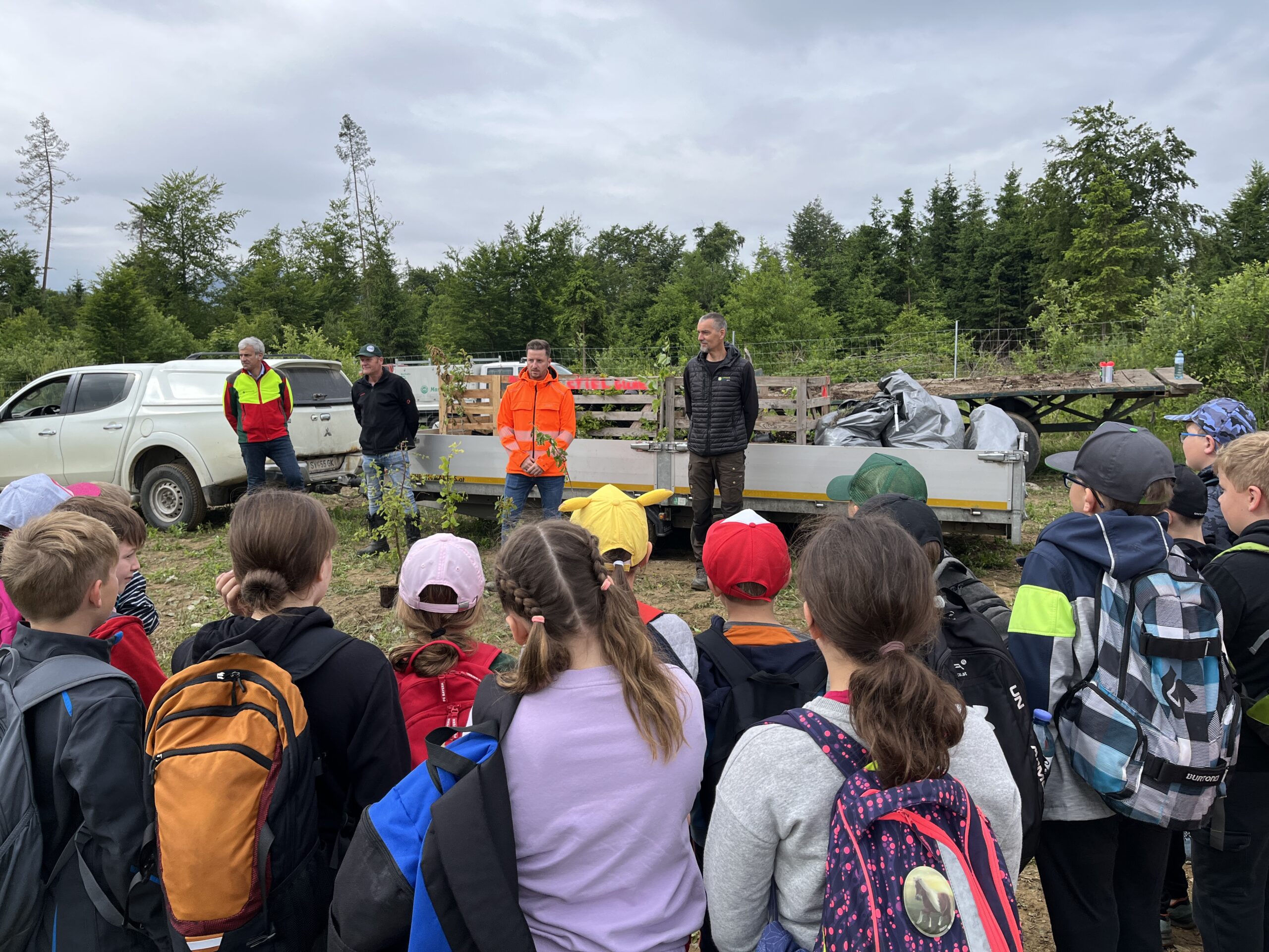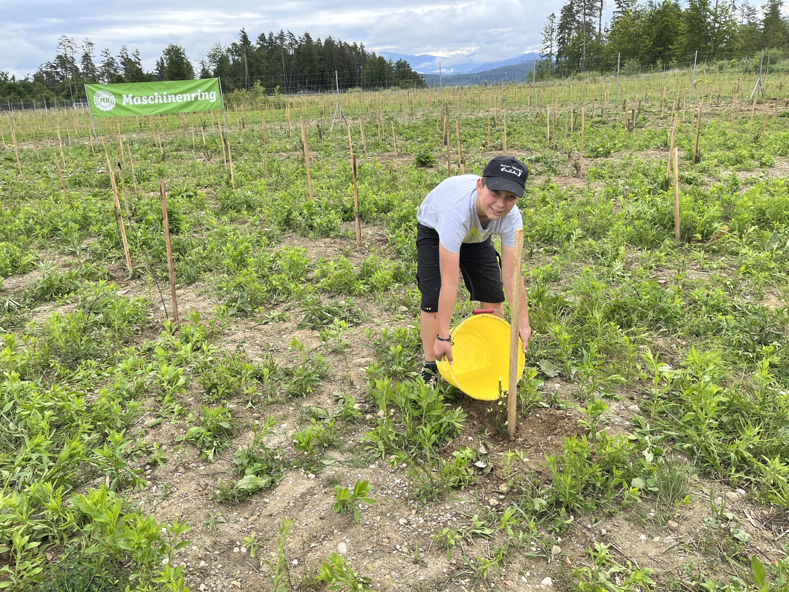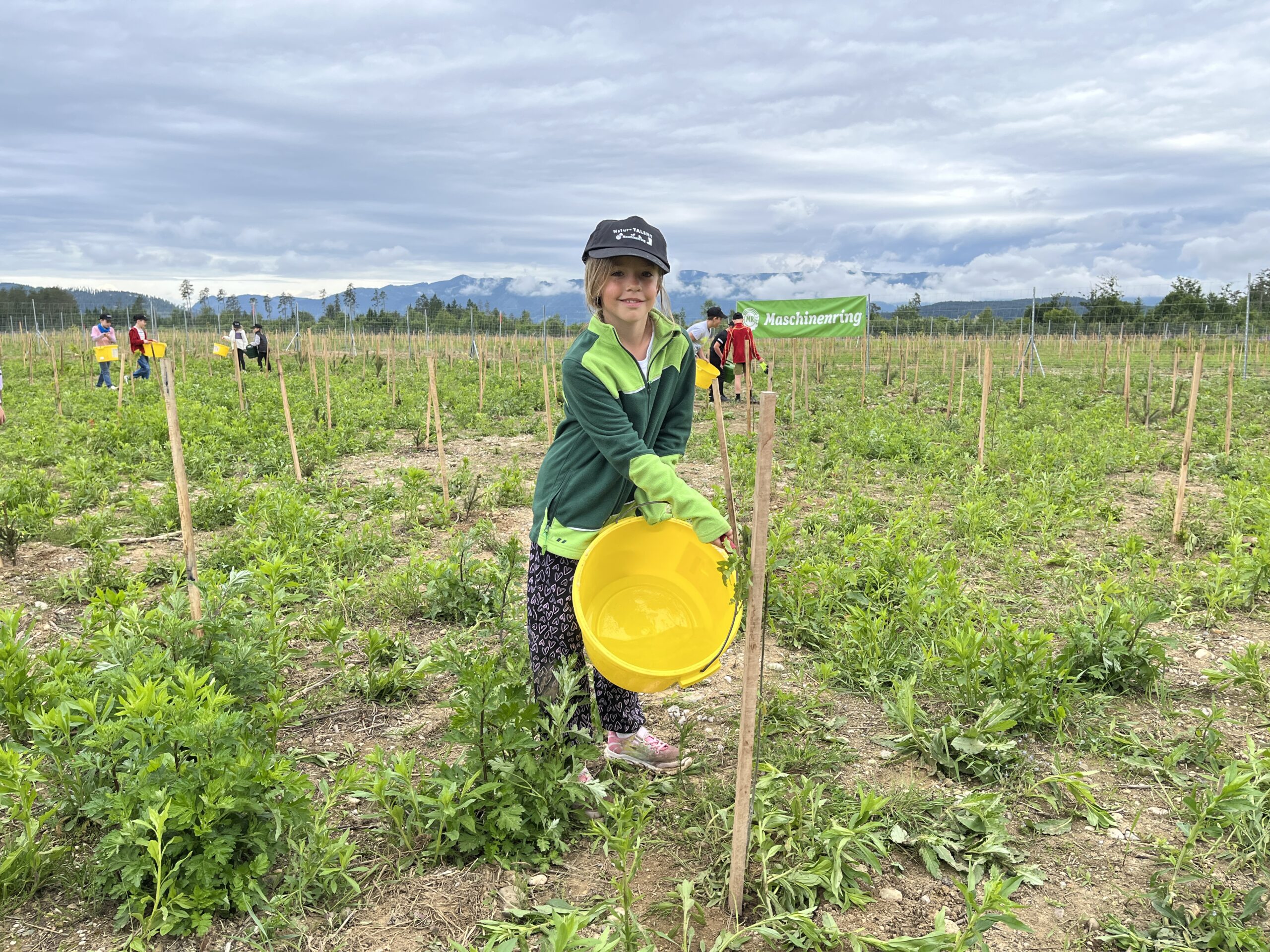 Die ÖBB mussten viele Bäume fällen, weil eine neue Zugstrecke nach Graz gebaut wurde. Deshalb werden nun an der Stelle vom Maschinenring neue Bäume gepflanzt. Dabei durften die Kinder der 3. und 4. Klasse einen Vormittag lang helfen. Wir pflanzten Fichten, Eichen, Föhren, Linden, Kirschen, Lärchen und Buchen.