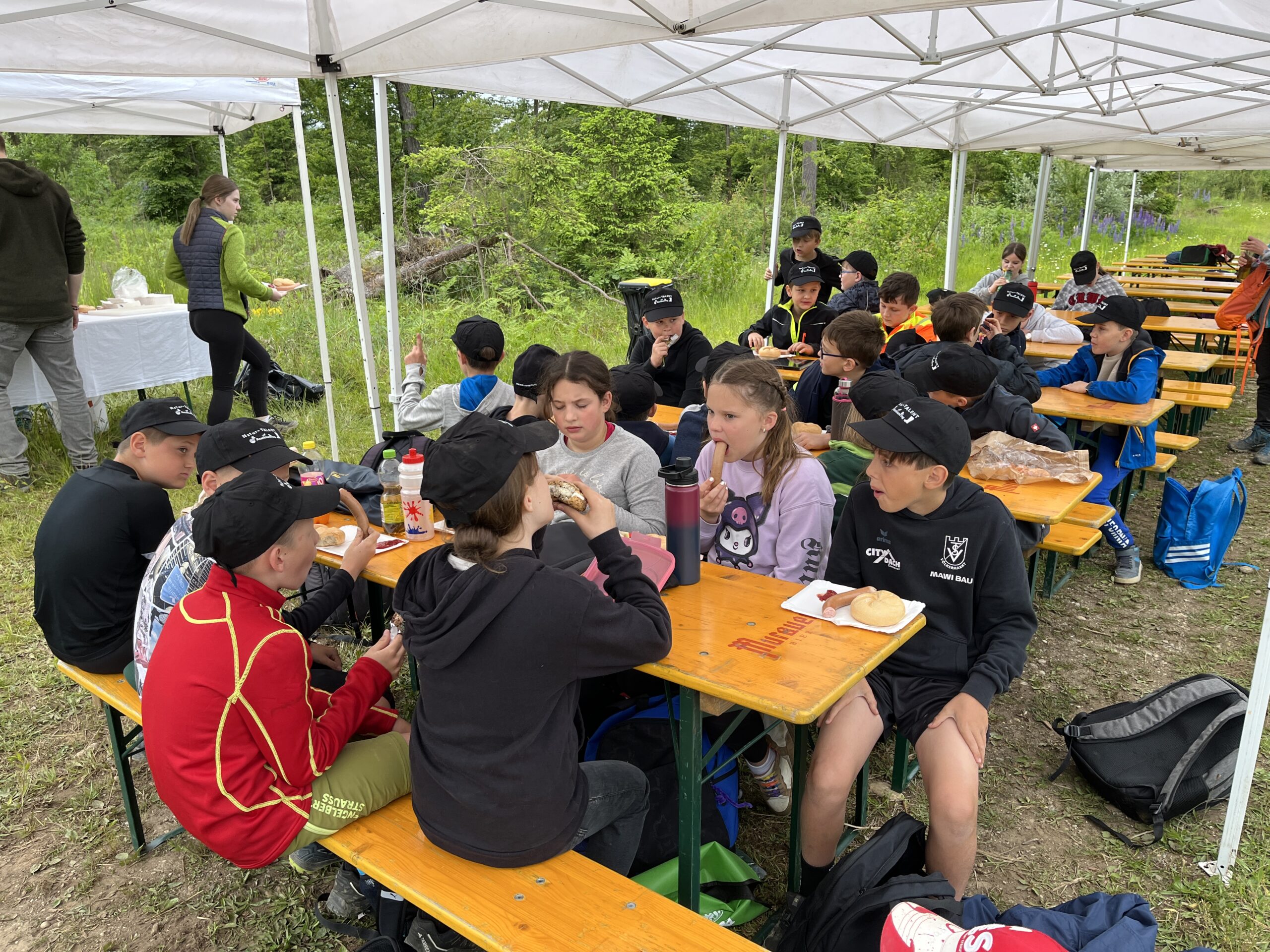 Als Dankeschön bekamen wir ein Käppi und leckere Frankfurter! Die fleißigen Kinder der 3. und 4. Klasse