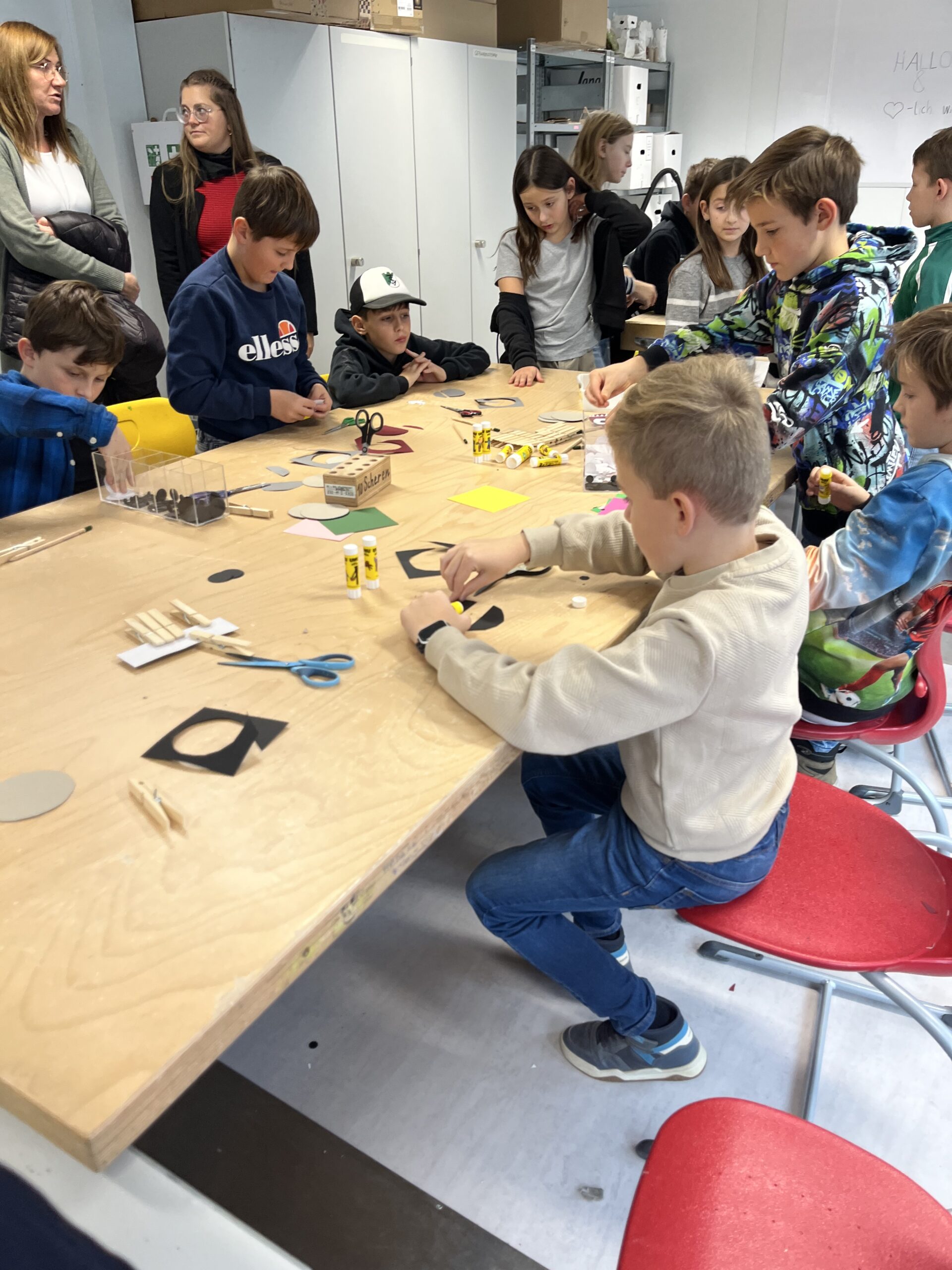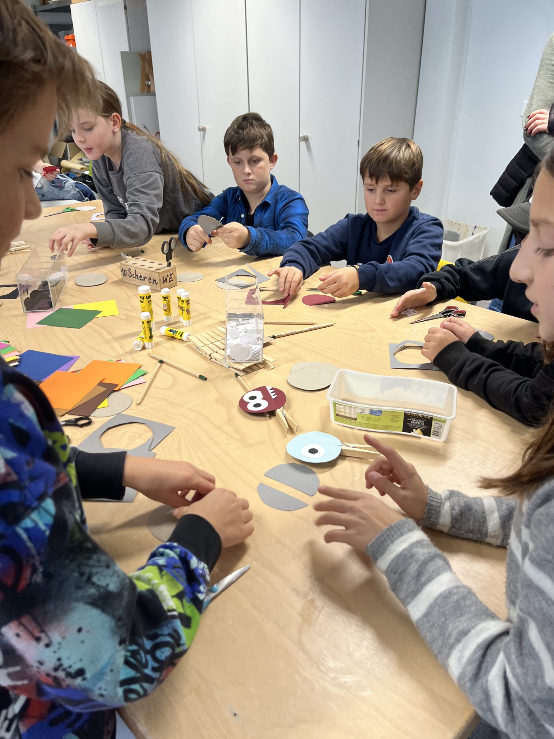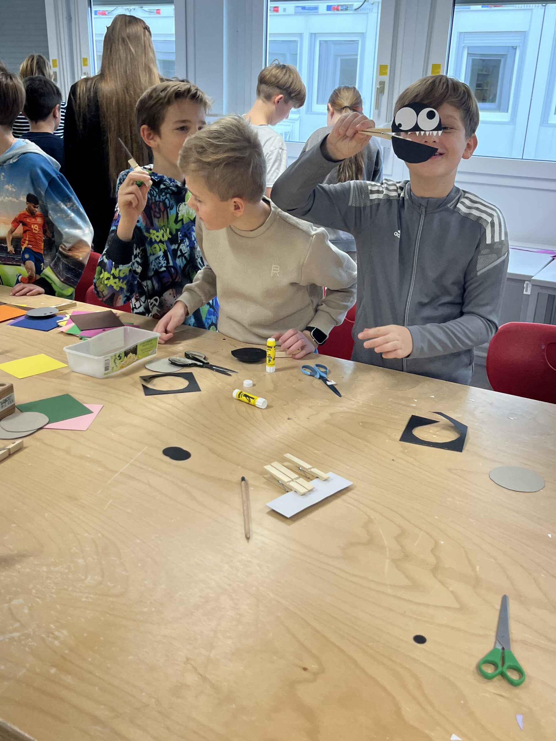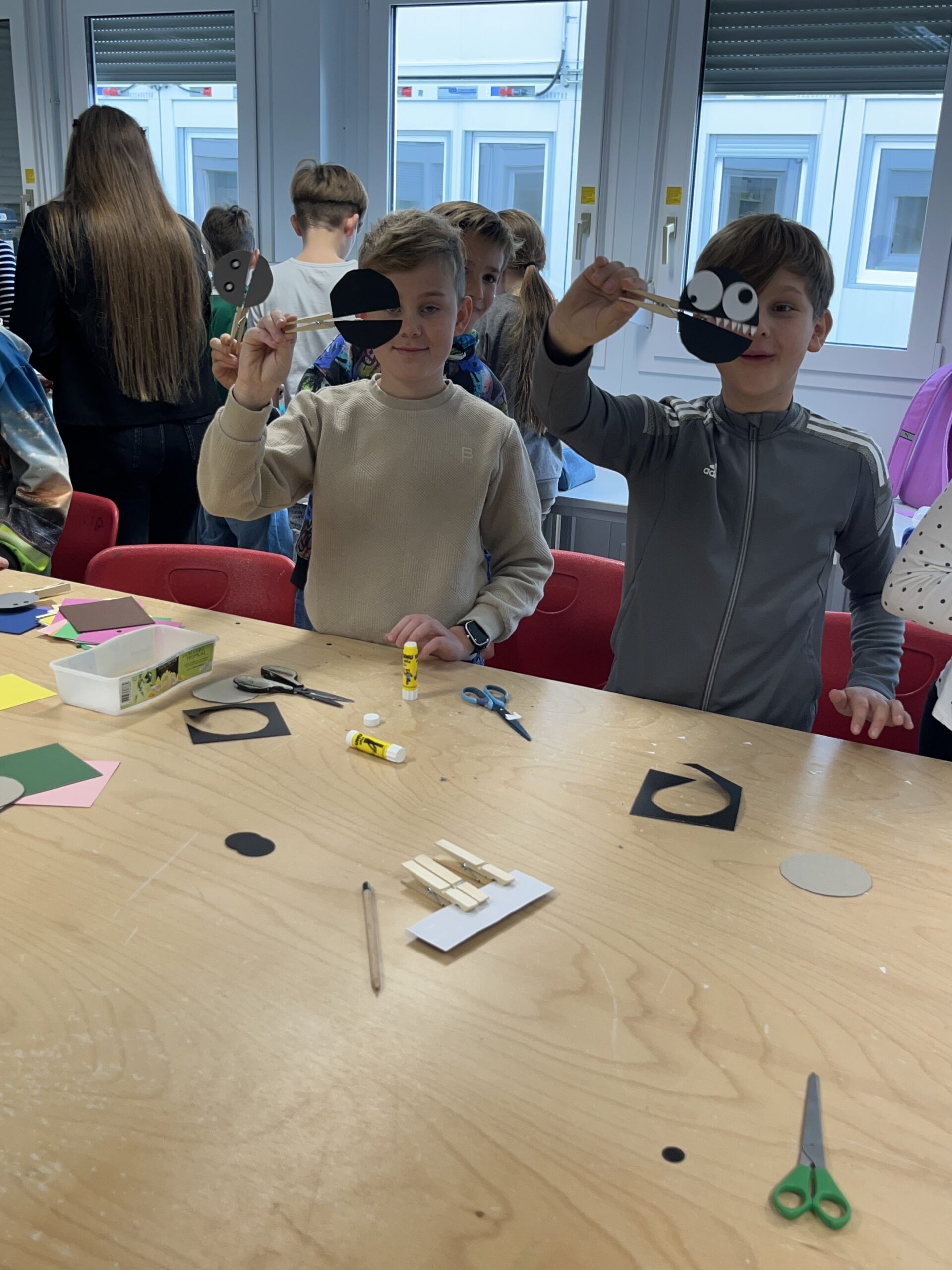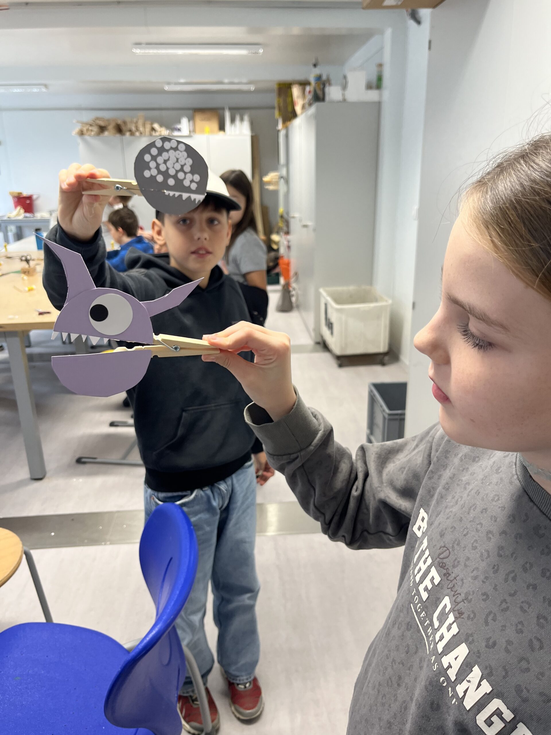 - Wir waren in zwei verschiedenen Werkräumen. In einem bastelten wir Masken, im andern Monster aus Wäscheklammern.