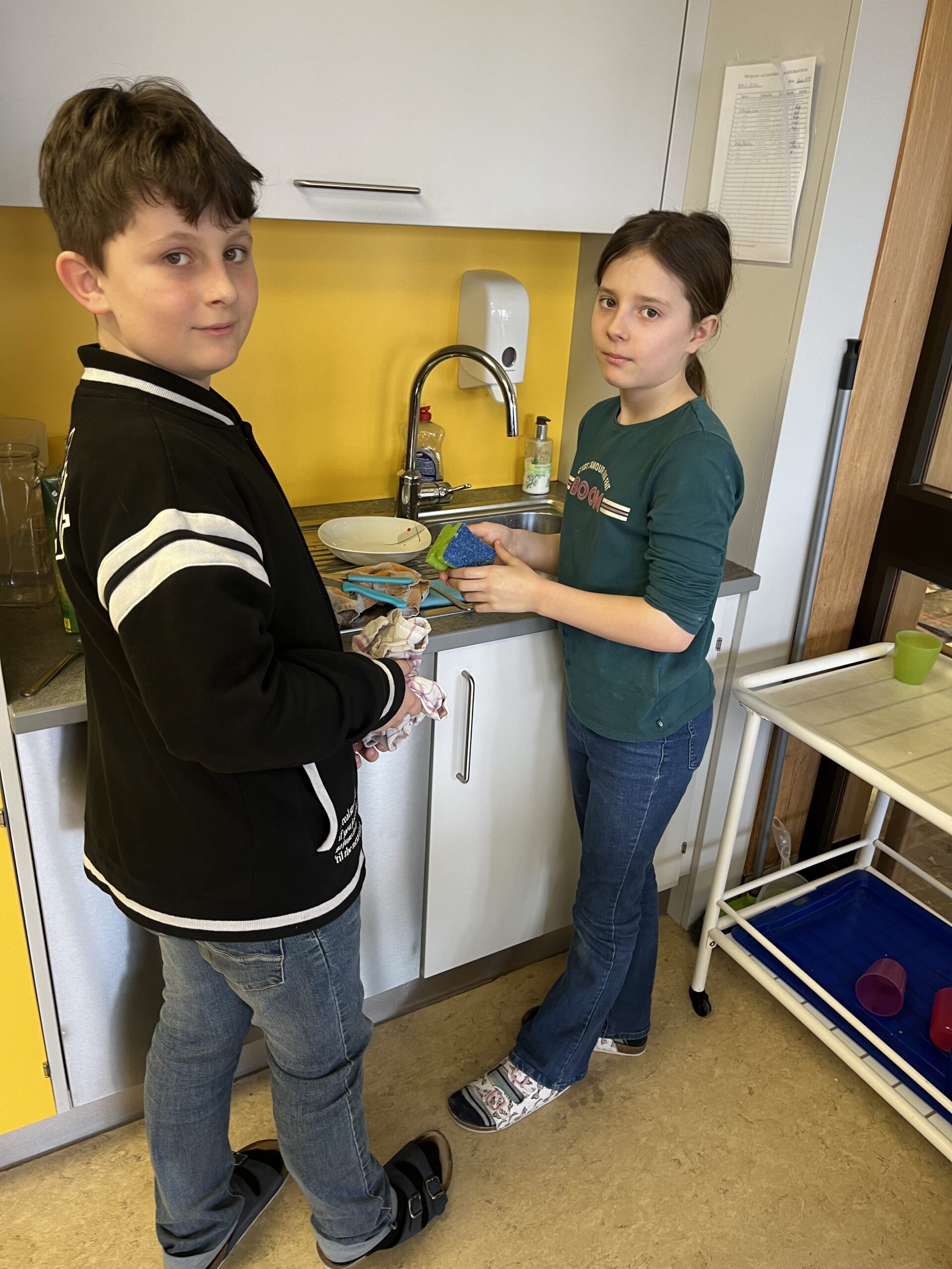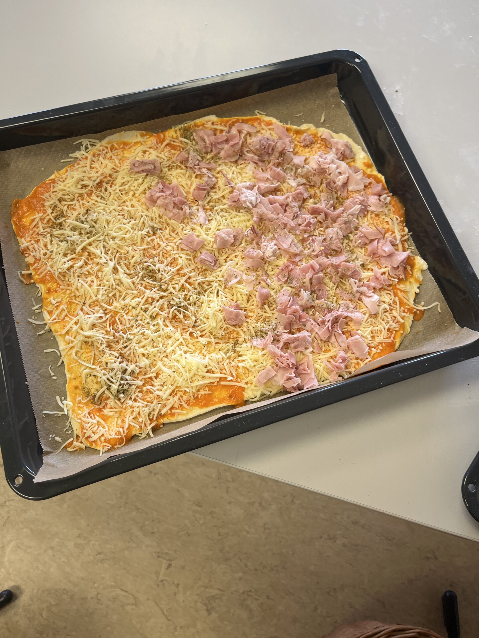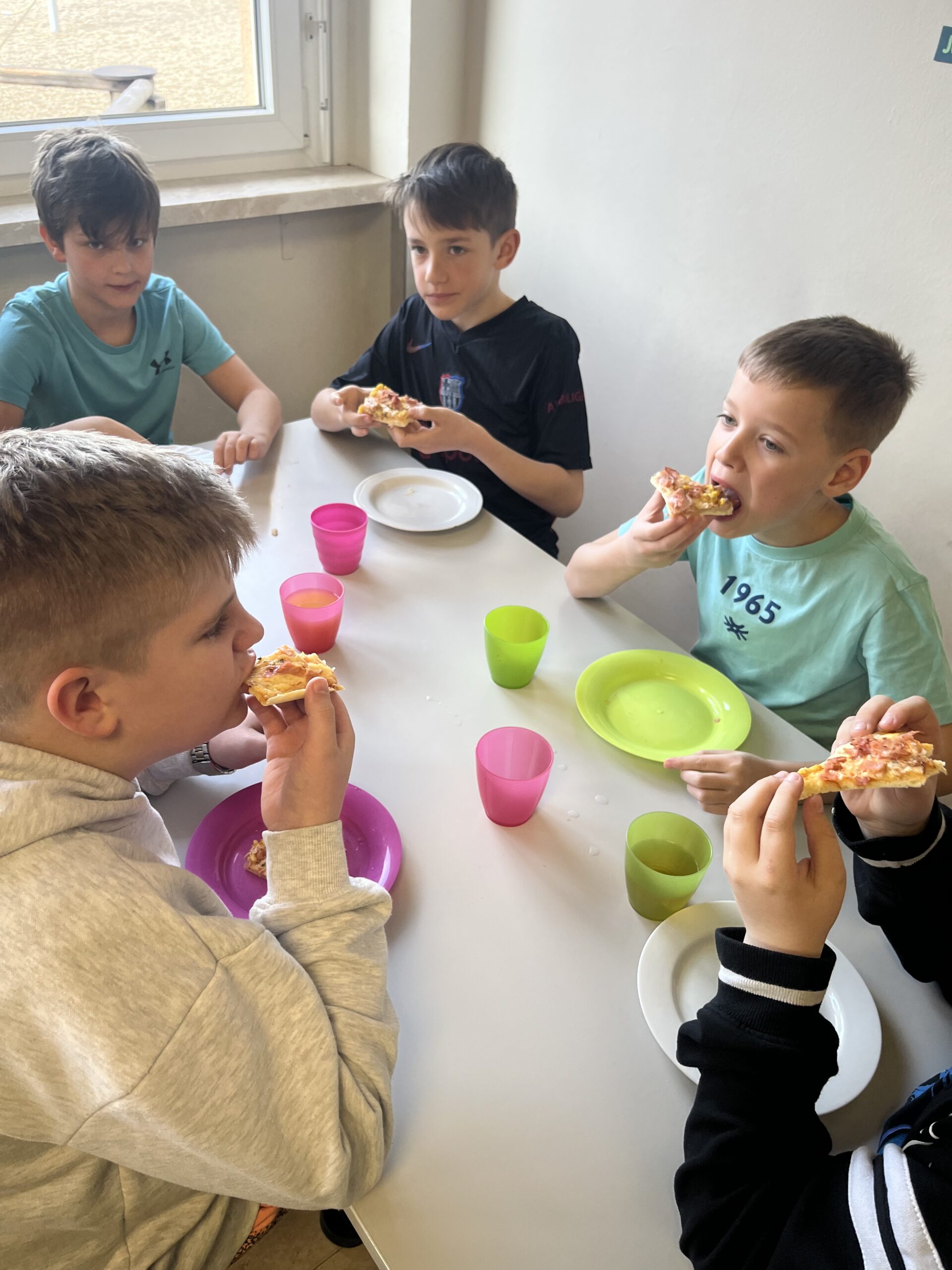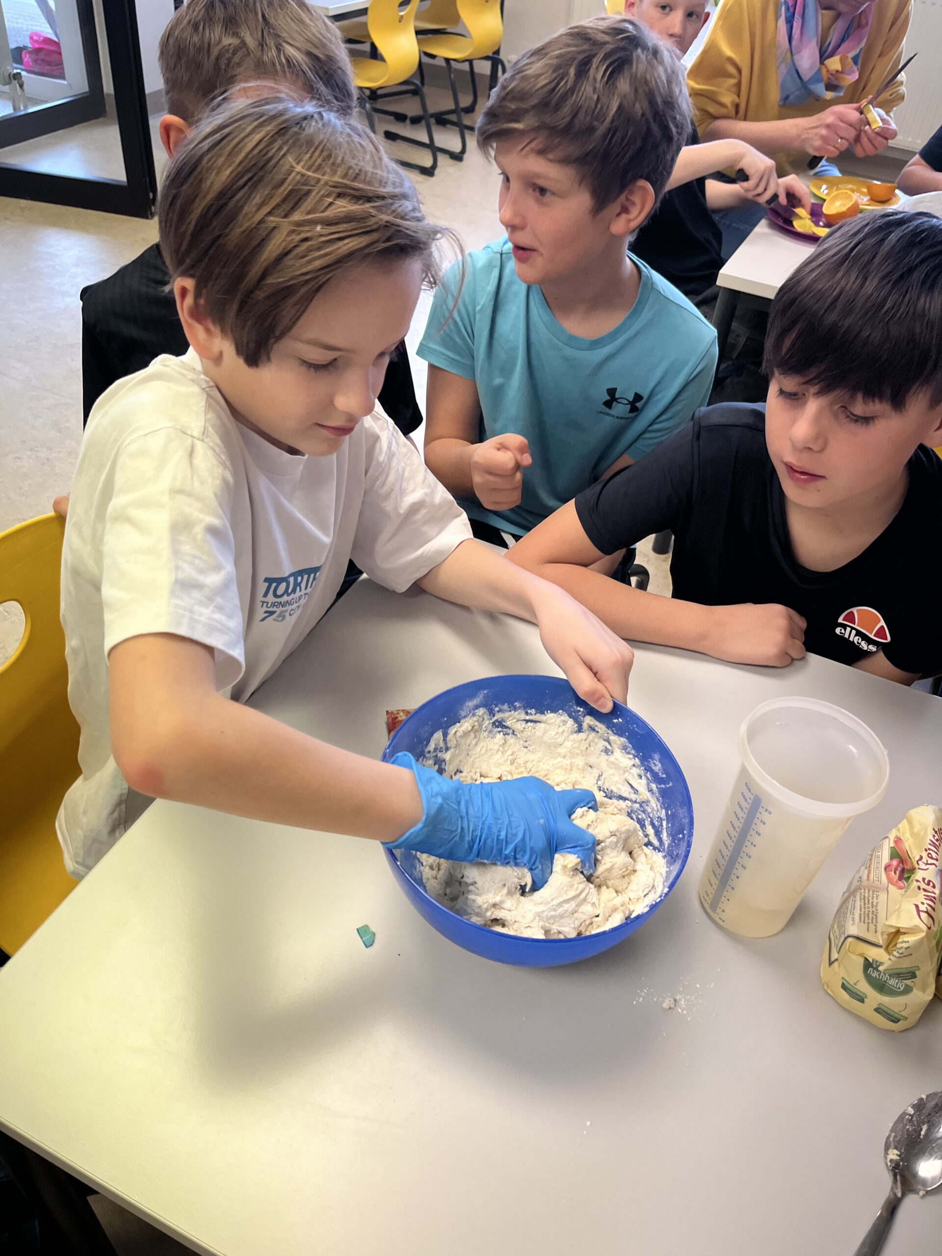 Heute durfte ein Teil der 4. Klasse unter die Pizzabäcker gehen. Die ganze Zubereitung wurde von den Schülern durchgeführt. Da aber der Pizzateig etwas Zeit zum Rasten braucht, hat ihn unsere Lehrerin schon vorbereitet. Der Teig wurde sorgfältig ausgerollt und mit selbstgemachter Tomatensauce bestrichen. Danach belegten wird ihn mit Käse, Schinken und Mais. Natürlich durften leckere Pizzagewürze nicht fehlen. Danach wurde die Pizza im Backrohr gebacken. In der Zwischenzeit bereitete der zweite Teil der Klasse Obstspieße vor. Bananen, Äpfel, Trauben, Erdbeeren, Orangen, Heidelbeeren alles was uns nur geschmeckt hat, steckten wir zu leckeren Spießen zusammen.
