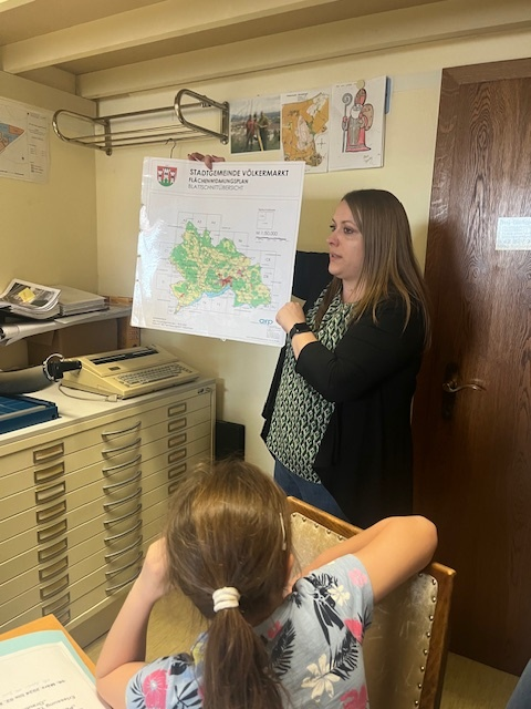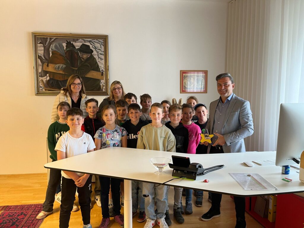 Heute am Vormittag fuhr ich mit meinen Mitschülern nach Völkermarkt. Nachdem wir angekommen waren, gingen wir ins Gemeindeamt. Dort wartete Lisa bereits auf uns. Zuerst zeigte sie uns ihr Büro. Anschließend begleitete sie uns zum Bürgermeister Markus Lakounigg. Er begrüßte uns sehr freundlich. Dann erklärte er uns wie viele Einwohner bzw. wie viele km² die Gemeinde Völkermarkt hat. Gleich darauf stellten wir unsere Fragen. Ich fragte:“ Haben Sie ein Dienstauto?“ Der Bürgermeister antwortete:“ Nein, aber ich bekomme eines.“