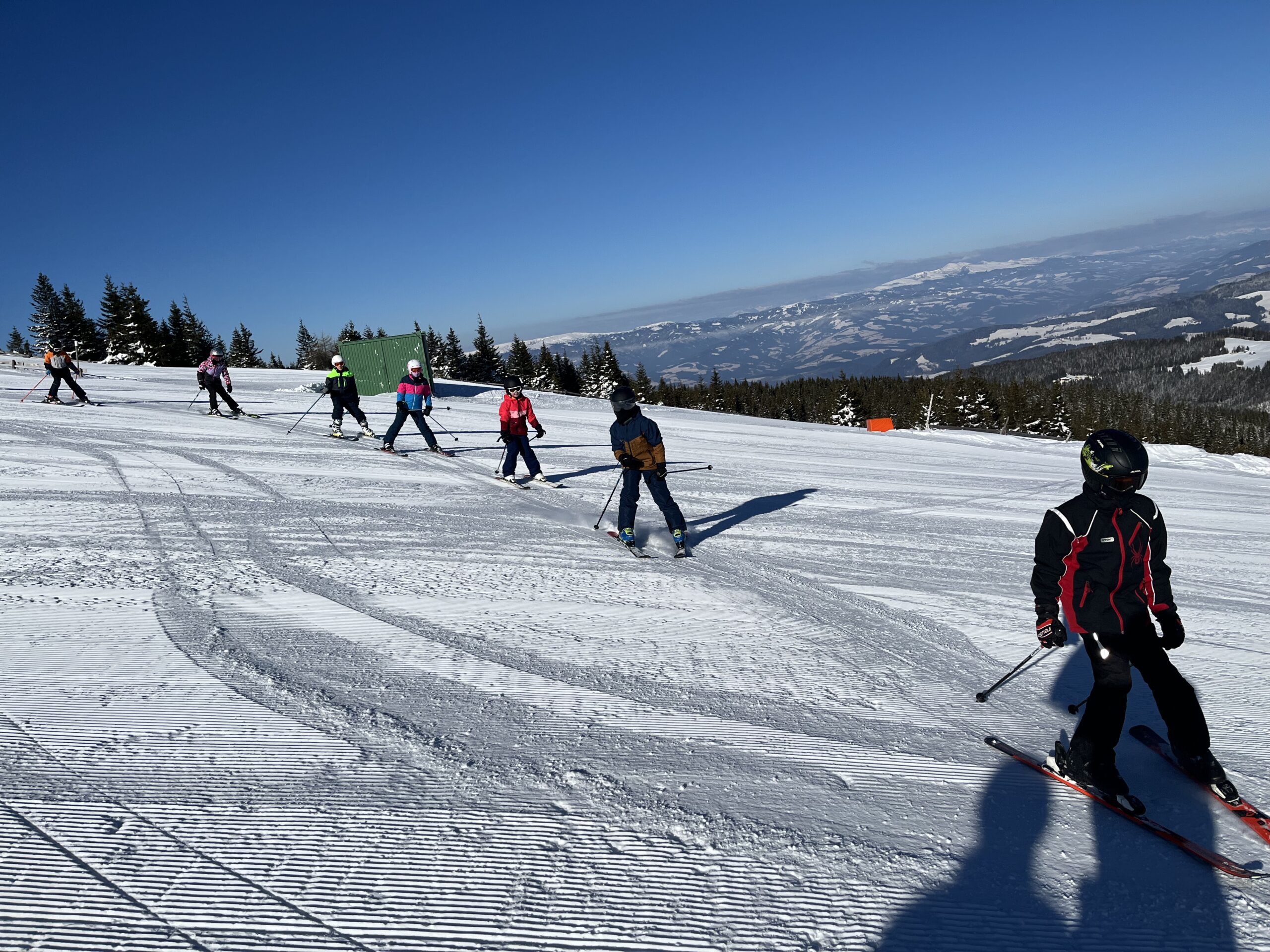 Nach etlichen Jahren fanden unsere diesjährigen Schitage wieder einmal auf der Weinebene statt. Doch trotz der etwas längeren Anfahrt bereute niemand diesen Entschluss, denn wir wurden mit perfekten Pisten und Kaiserwetter belohnt. Bei diesen tollen Bedingungen konnte jedes Kind, entsprechend den Vorkenntnissen, in kleinen Gruppen seine Schitechnik verbessern und drei tolle Tage verbringen.
