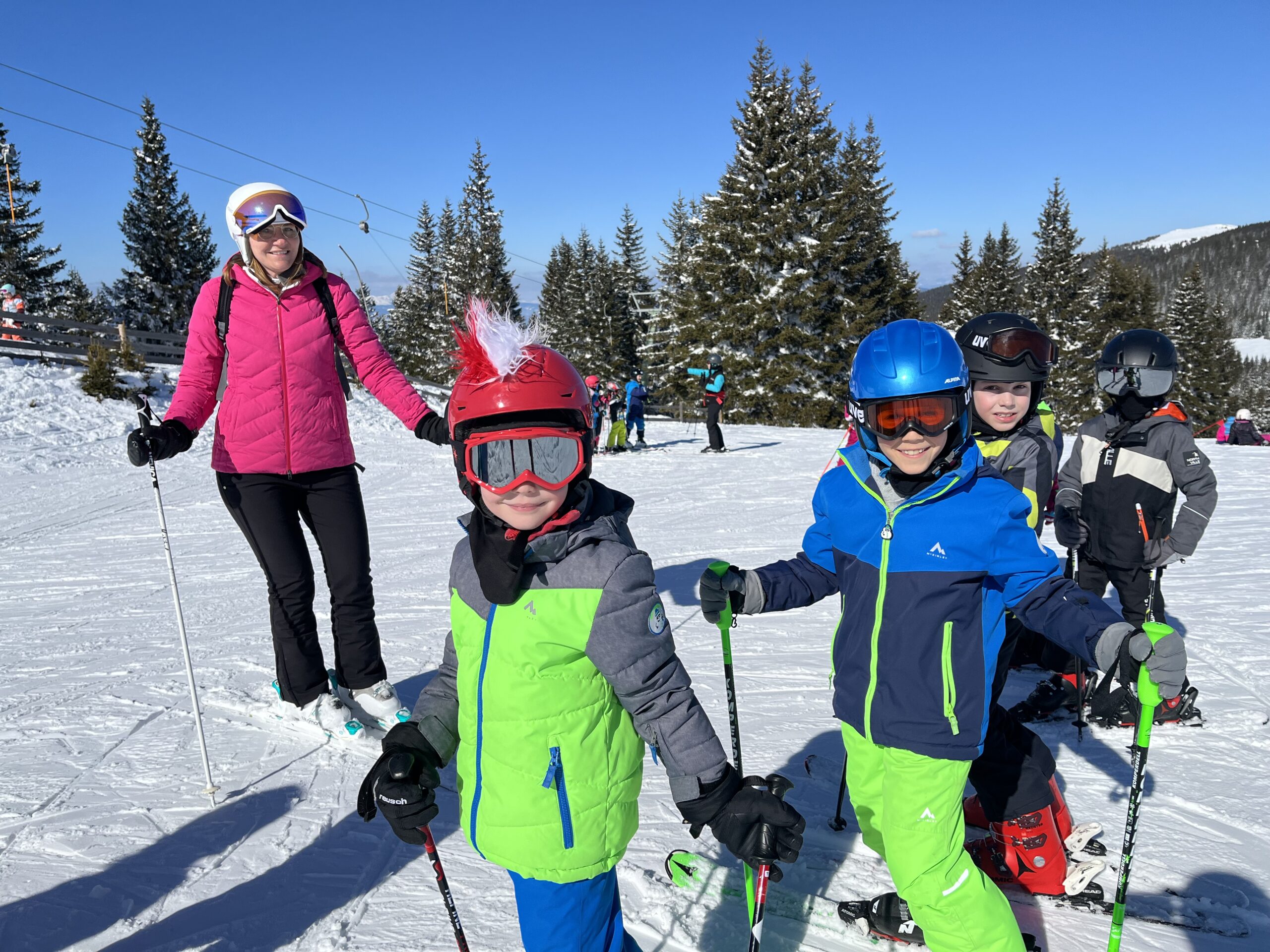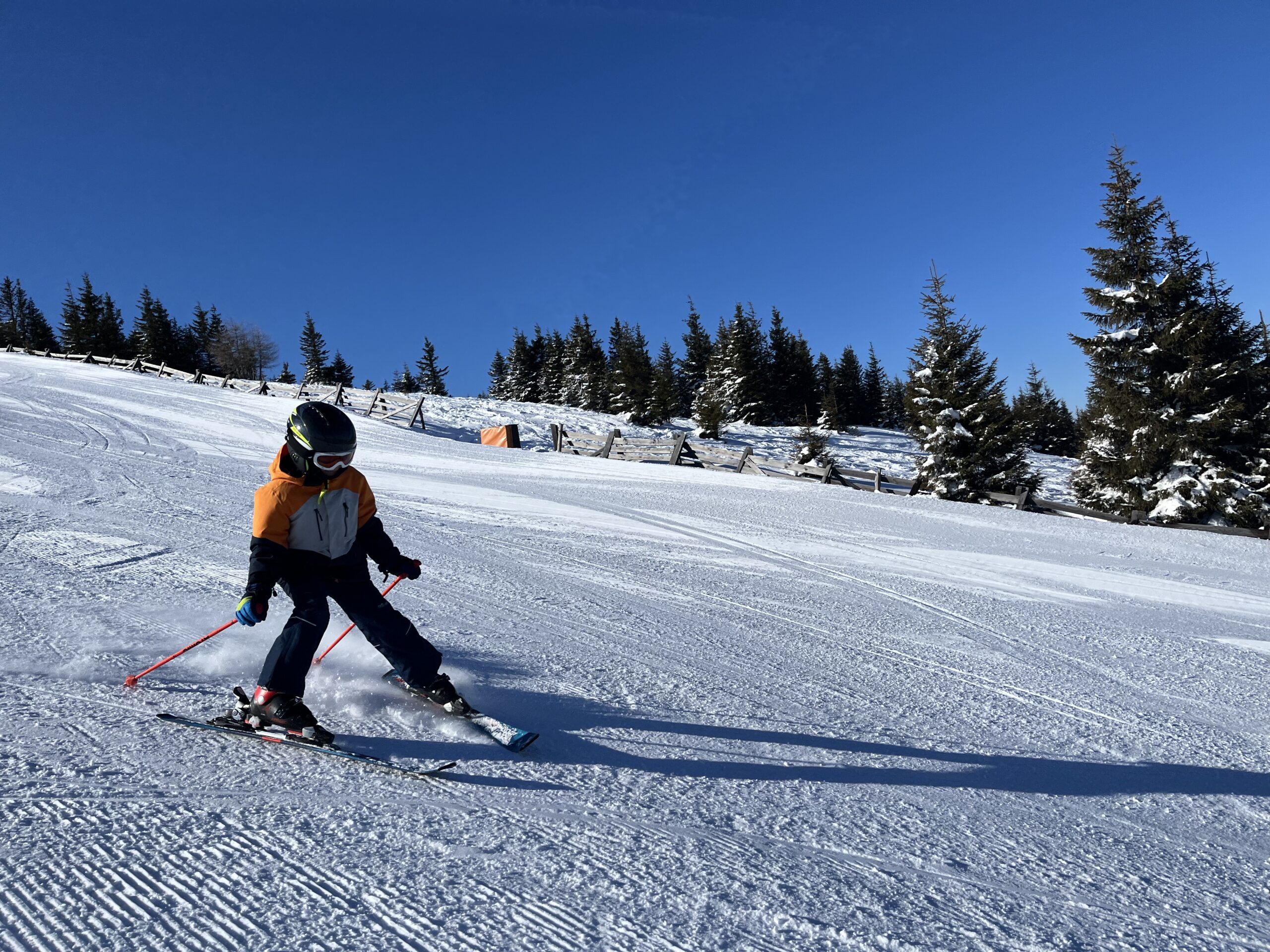 Ob krasnem vremenu in odlično pripravljenih progah smo uživali naše letošnje smučarske dneve na smučišču Weinebene. Otroci so lahko v majhnjih skupinah izboljšali tehniko smučanja in ućivali v naravi.
