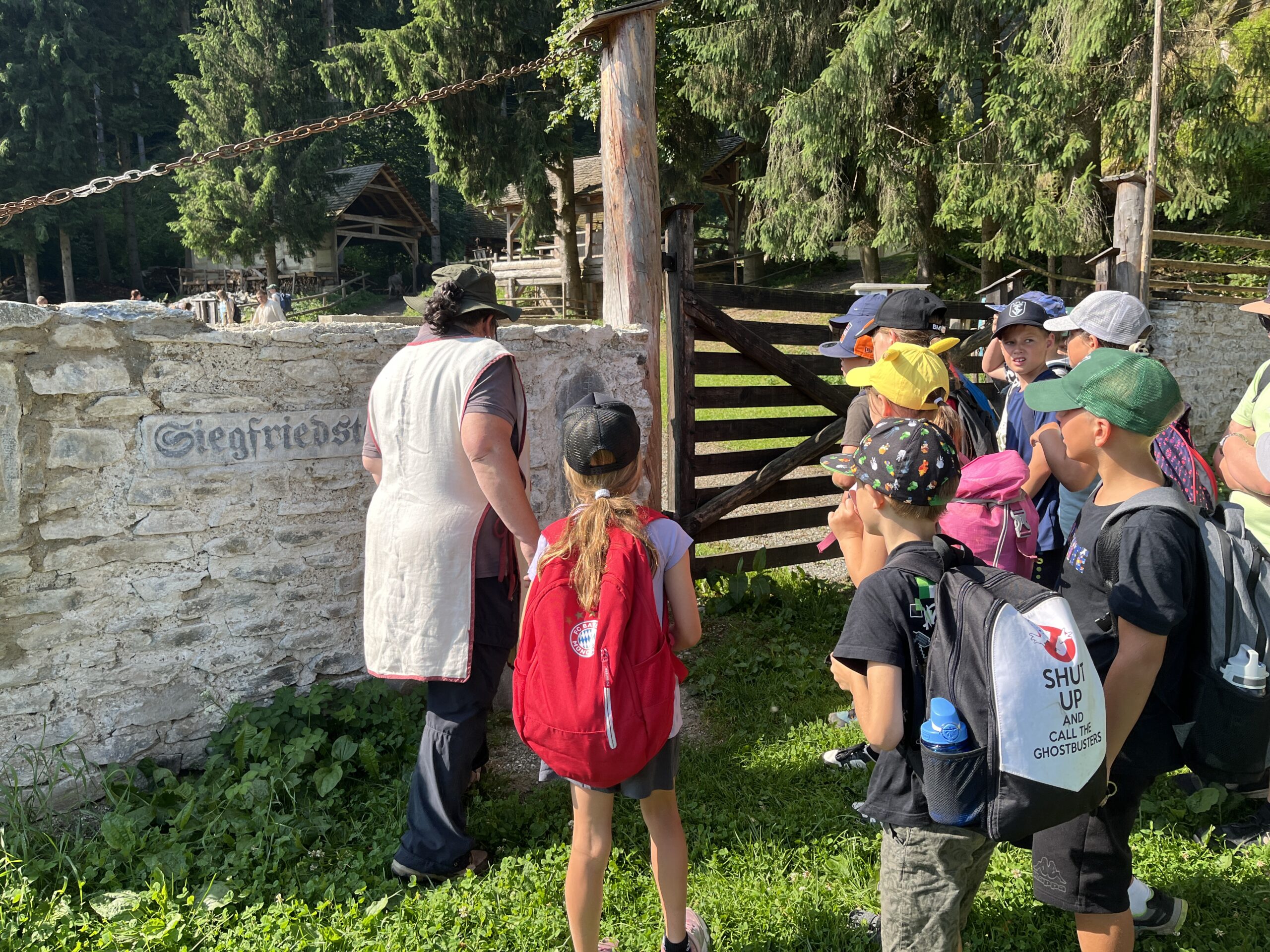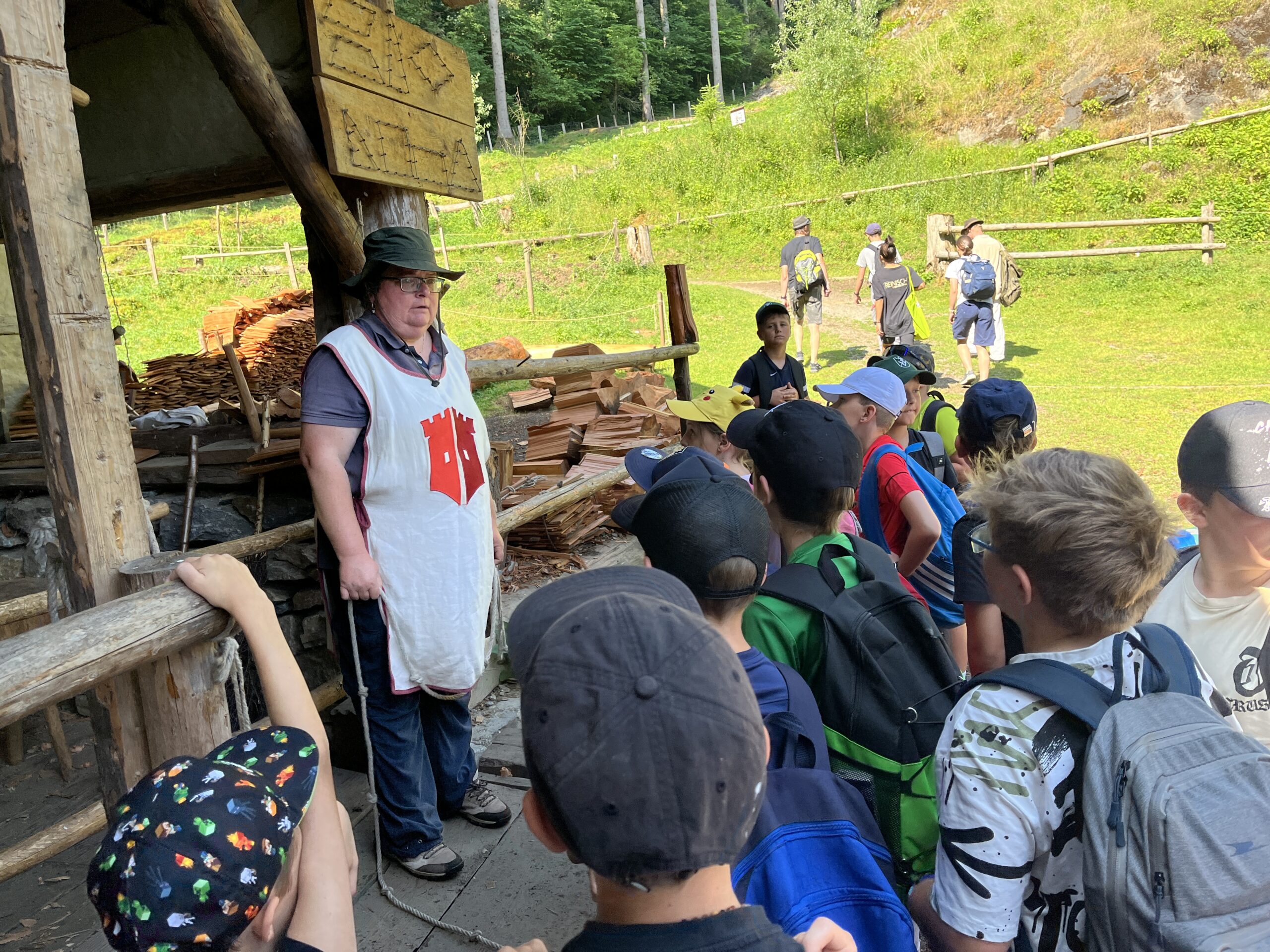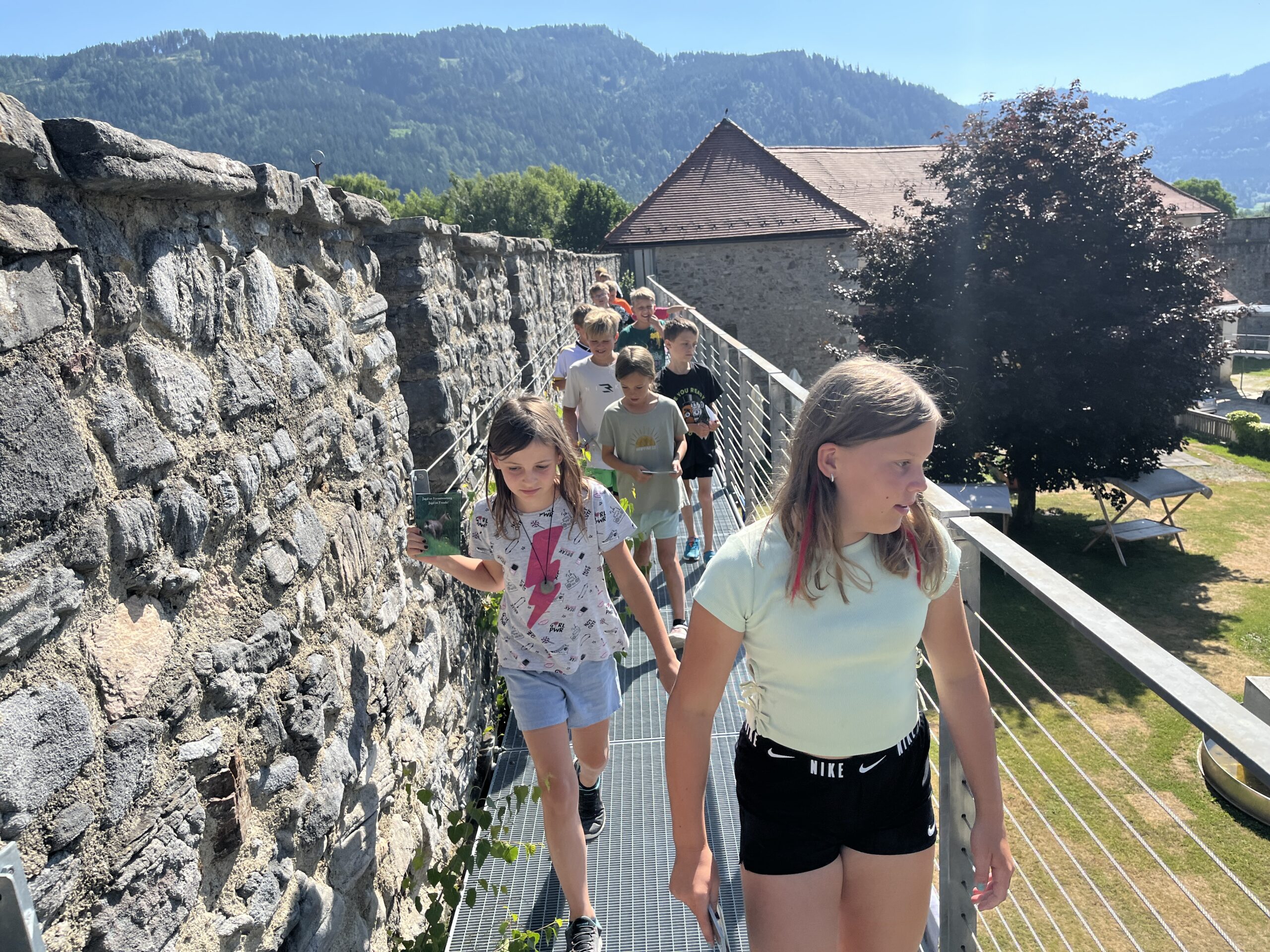 Als wir ankamen, gingen wir zum Fürstenhof zur mittelalterlichen Begrüßung. Dort bekamen alle Brot mit Salz, das im Mittelalter als weißes Gold bezeichnet wurde. Am Nachmittag war die vierte Klasse bei der Schokoladenmanufaktur Craigher und haben Schokolade verkostet. Der letzte Programmpunkt am Montag war das Stadtmuseum am Petersberg in der Burg. Drinnen haben alle gespannt zugehört. Am Dienstag sind wir zum Burgbau gegangen und haben uns die verschiedenen Arbeiter angesehen, der Schmied hat mir am besten gefallen. Nach dem die Gruppe und ich die erstaunliche Burg gesehen haben, machten wir einen Kettenanhänger aus Speckstein. Anschließend machten wir und auf dem Weg zum Naturbadeteich um zu baden. Am Abend gingen wir zum Spektakeldinner im Getreidespeicher wo wir zum Ritter und zum Burgfräulein geschlagen wurden. Am Mittwoch, den letzten Tag, waren wir im Fürstenhof im Wohnzimmer der Natur und bei der Kräuterlehre. Im Wohnzimmer der Natur haben wir alle Tiere des Waldes gesehen. Am besten hat mir die Familie der Steinböcke gefallen. Später gingen wir zu Kräuterlehre wo wir Kräutersalz gemacht haben und einen Kräutersmoothie getrunken haben.