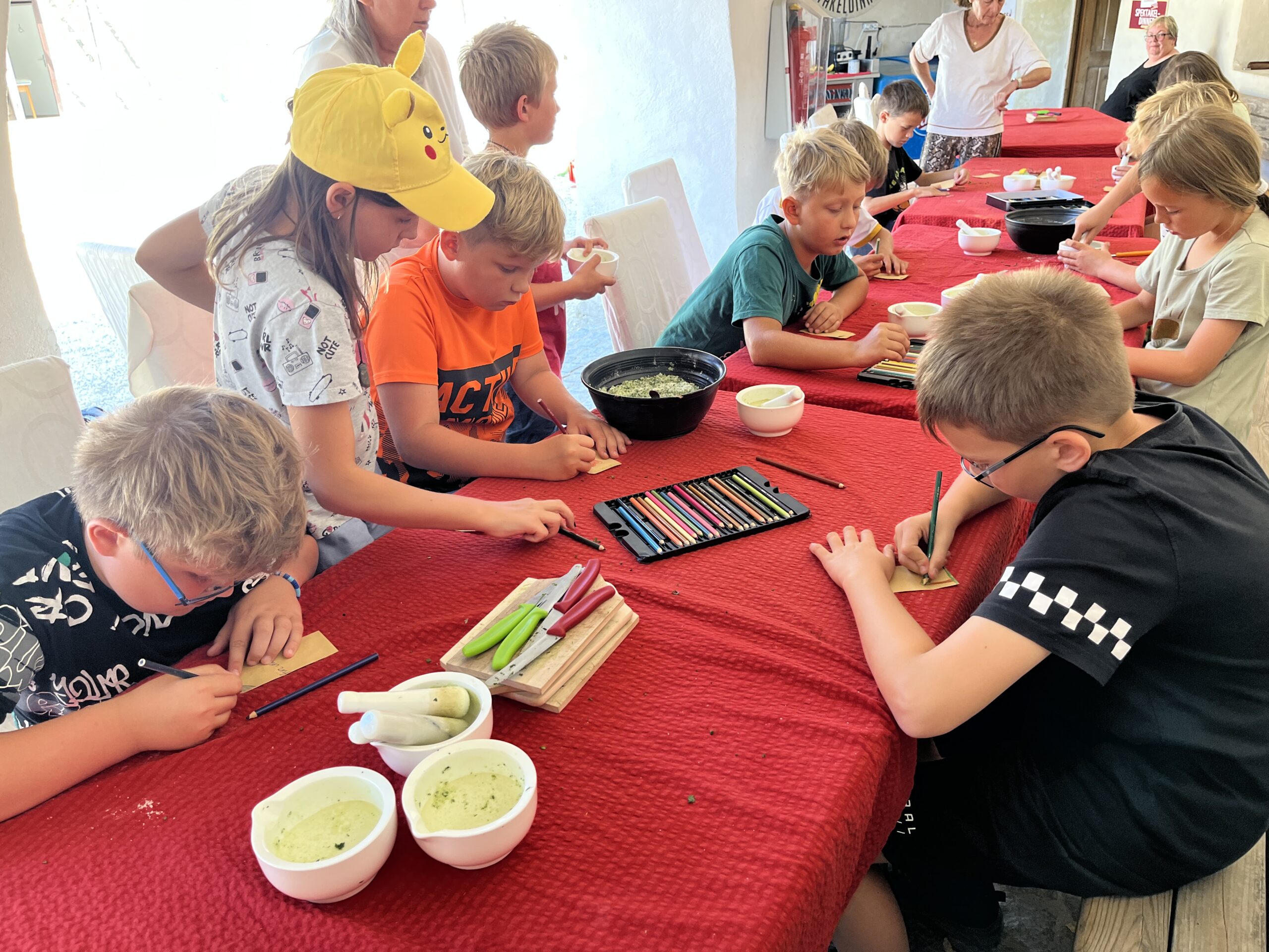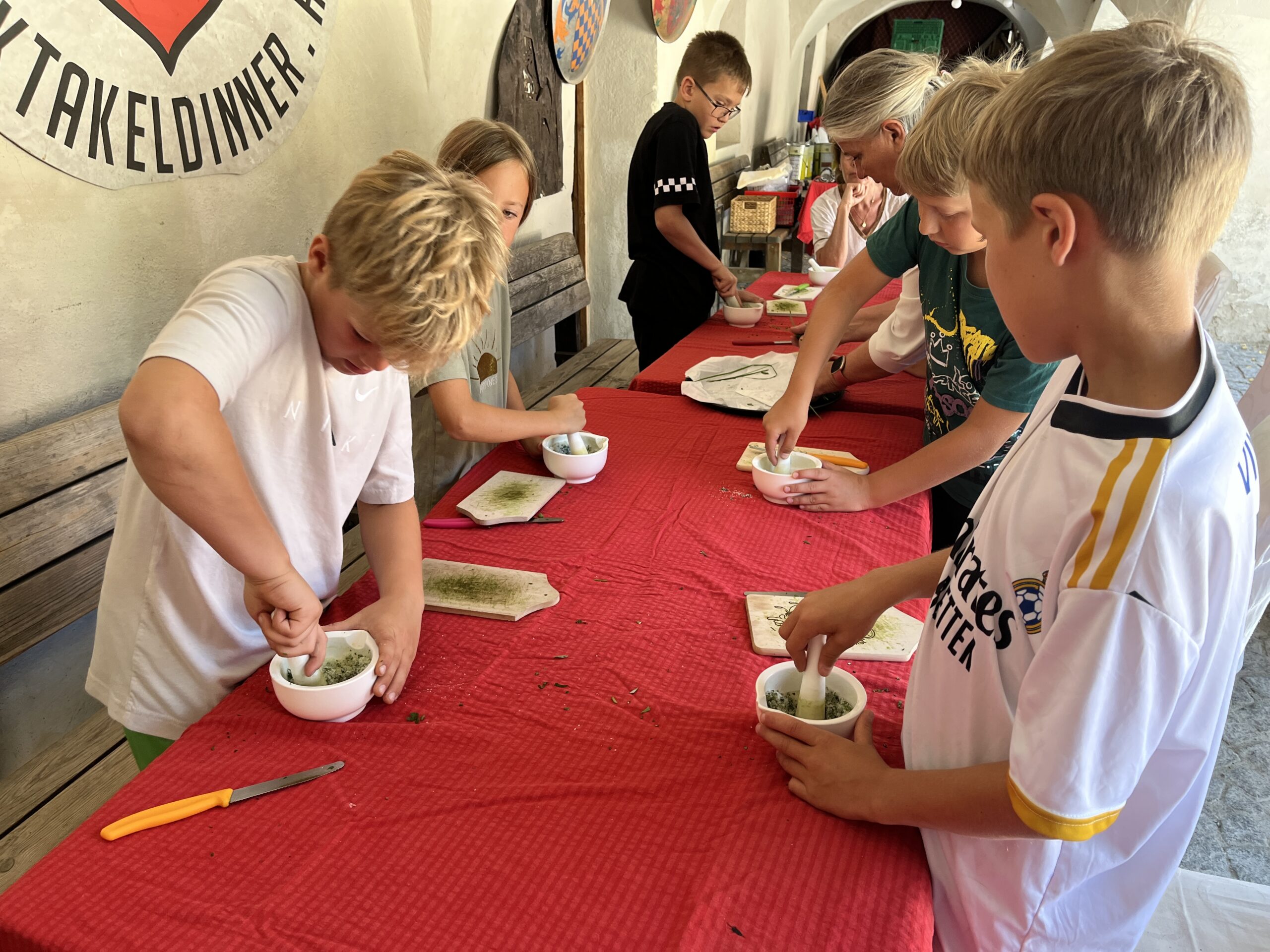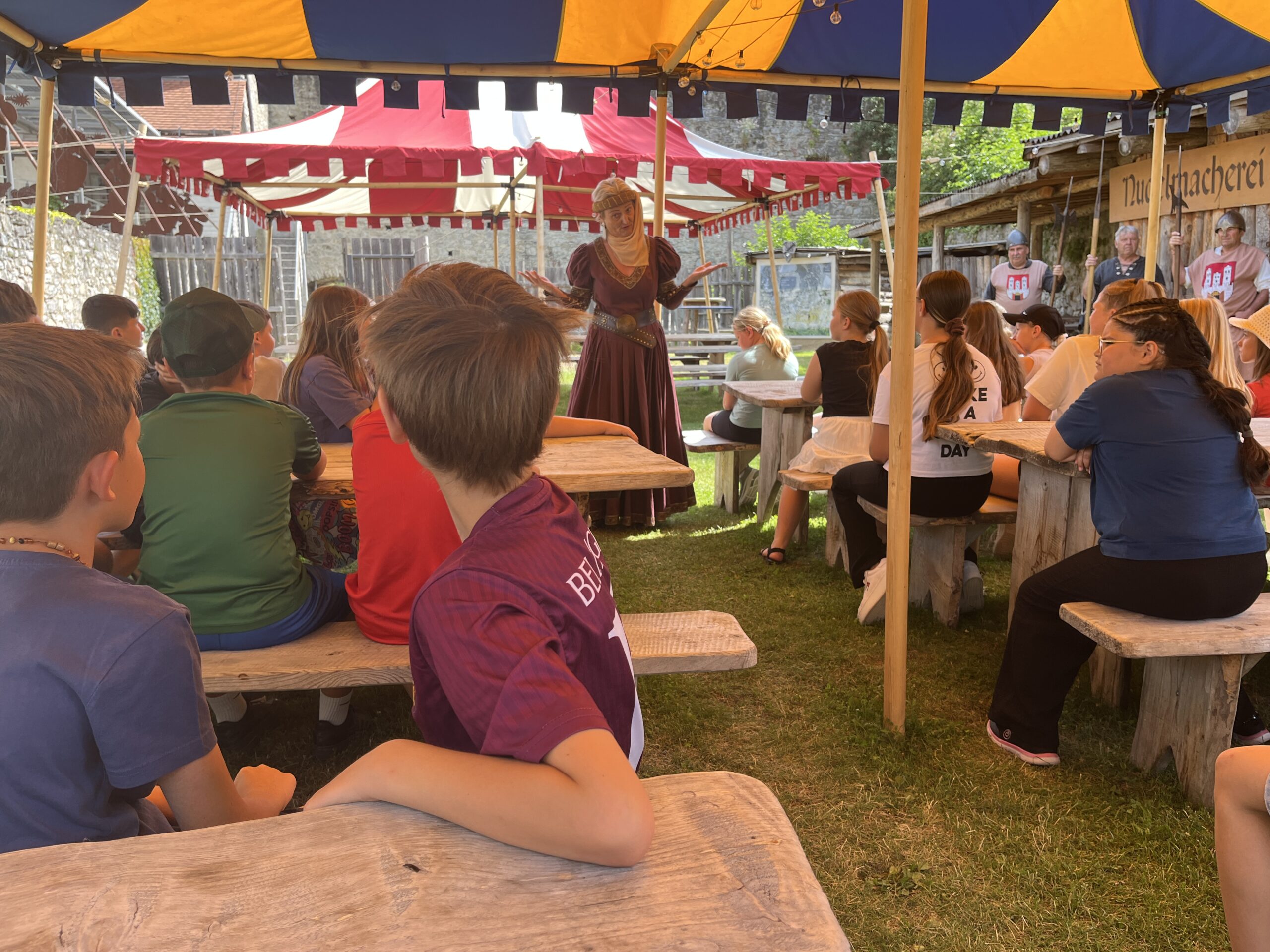 Als wir ankamen, gingen wir zum Fürstenhof zur mittelalterlichen Begrüßung. Dort bekamen alle Brot mit Salz, das im Mittelalter als weißes Gold bezeichnet wurde. Am Nachmittag war die vierte Klasse bei der Schokoladenmanufaktur Craigher und haben Schokolade verkostet. Der letzte Programmpunkt am Montag war das Stadtmuseum am Petersberg in der Burg. Drinnen haben alle gespannt zugehört. Am Dienstag sind wir zum Burgbau gegangen und haben uns die verschiedenen Arbeiter angesehen, der Schmied hat mir am besten gefallen. Nach dem die Gruppe und ich die erstaunliche Burg gesehen haben, machten wir einen Kettenanhänger aus Speckstein. Anschließend machten wir und auf dem Weg zum Naturbadeteich um zu baden. Am Abend gingen wir zum Spektakeldinner im Getreidespeicher wo wir zum Ritter und zum Burgfräulein geschlagen wurden. Am Mittwoch, den letzten Tag, waren wir im Fürstenhof im Wohnzimmer der Natur und bei der Kräuterlehre. Im Wohnzimmer der Natur haben wir alle Tiere des Waldes gesehen. Am besten hat mir die Familie der Steinböcke gefallen. Später gingen wir zu Kräuterlehre wo wir Kräutersalz gemacht haben und einen Kräutersmoothie getrunken haben.