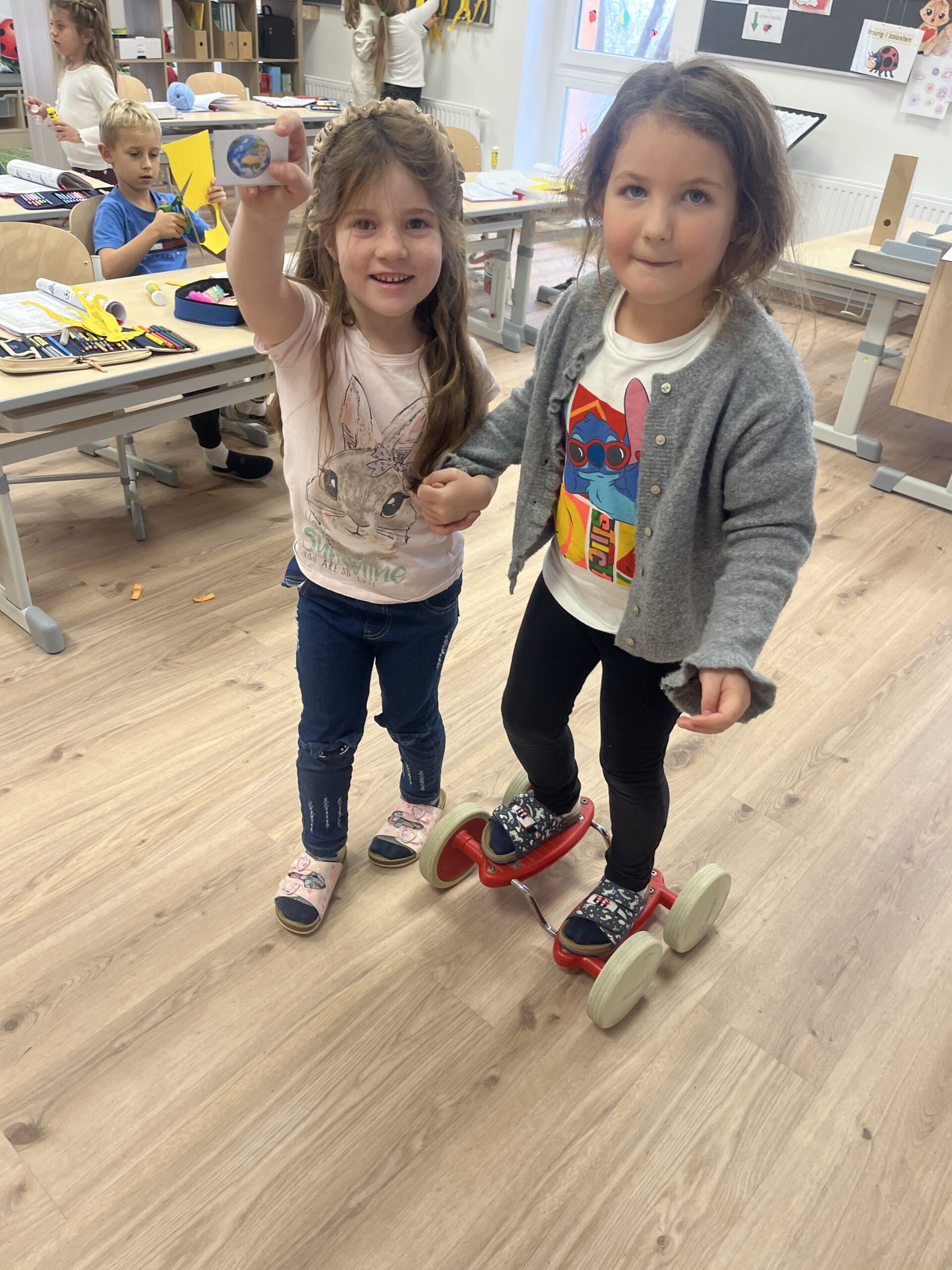 Naš čarobni dan je bil posvečen petim glasnim junakom – samoglasnikom A, E, I, O in U! Otroci so ustvarjali z veseljem: barvali, risali, rezali in lepili, reševali zabavne delovne liste ter se igrali z besedami in zvoki.